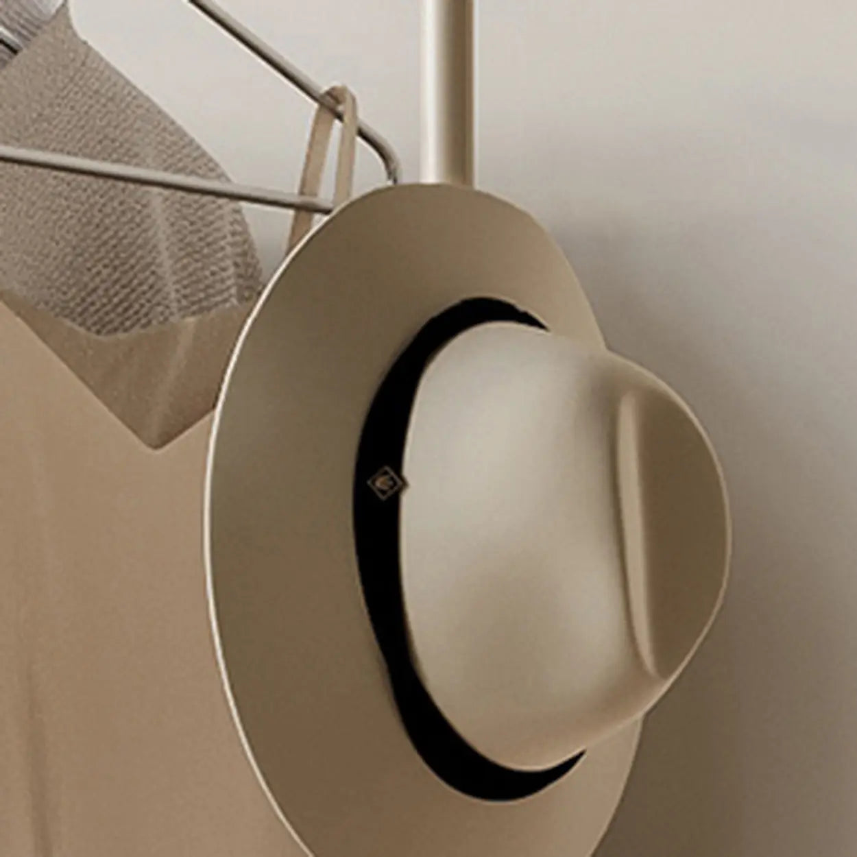 This modern coat rack features an elegant design and adds practical storage to your home. Made of a durable stainless steel frame and metal hooks, this coat rack is perfect for any corner of your home, hallway, bedroom, or office. Its clean off-white color gives the space a fresh and stylish feel, and the addition of a large storage shelf and a drawer makes it extremely practical. It is ideal for hanging coats, and bags, or displaying decorative items.