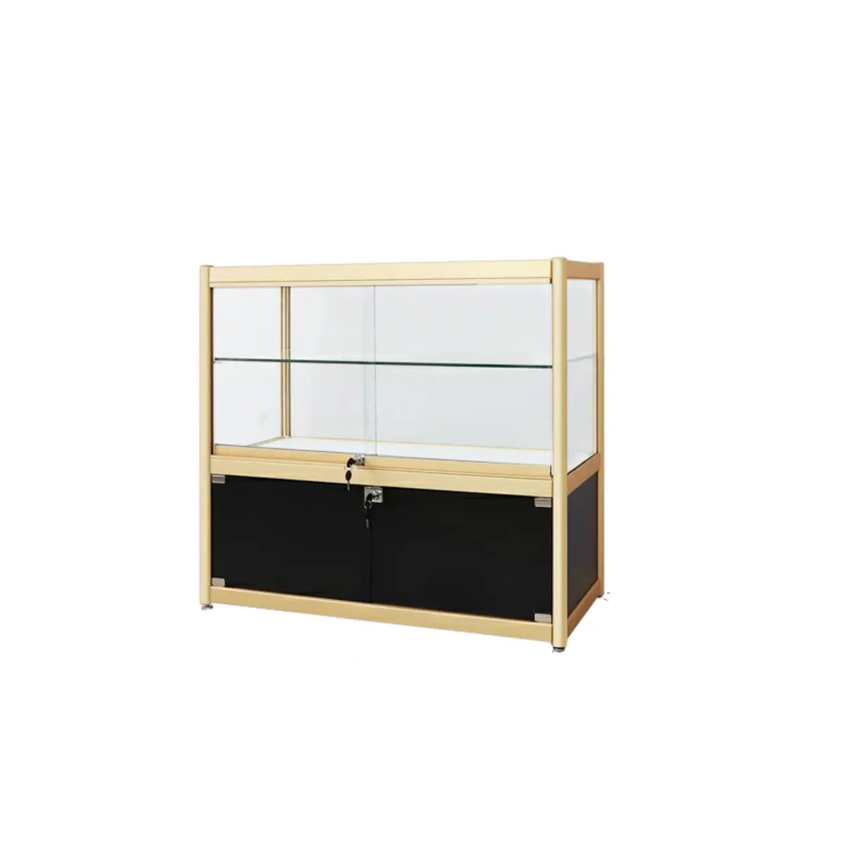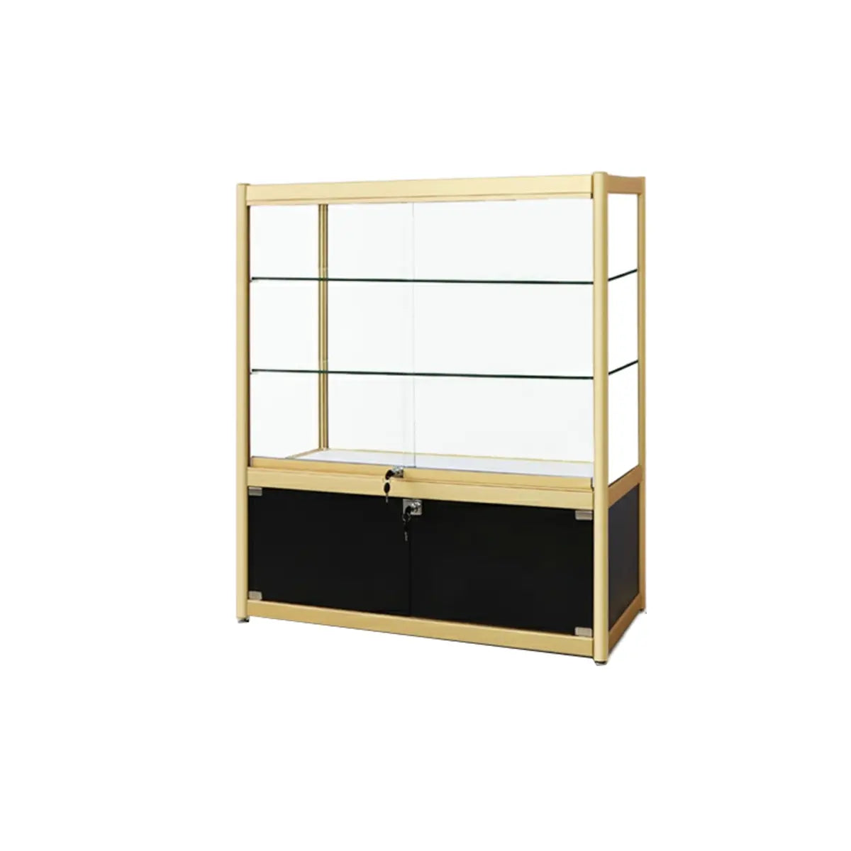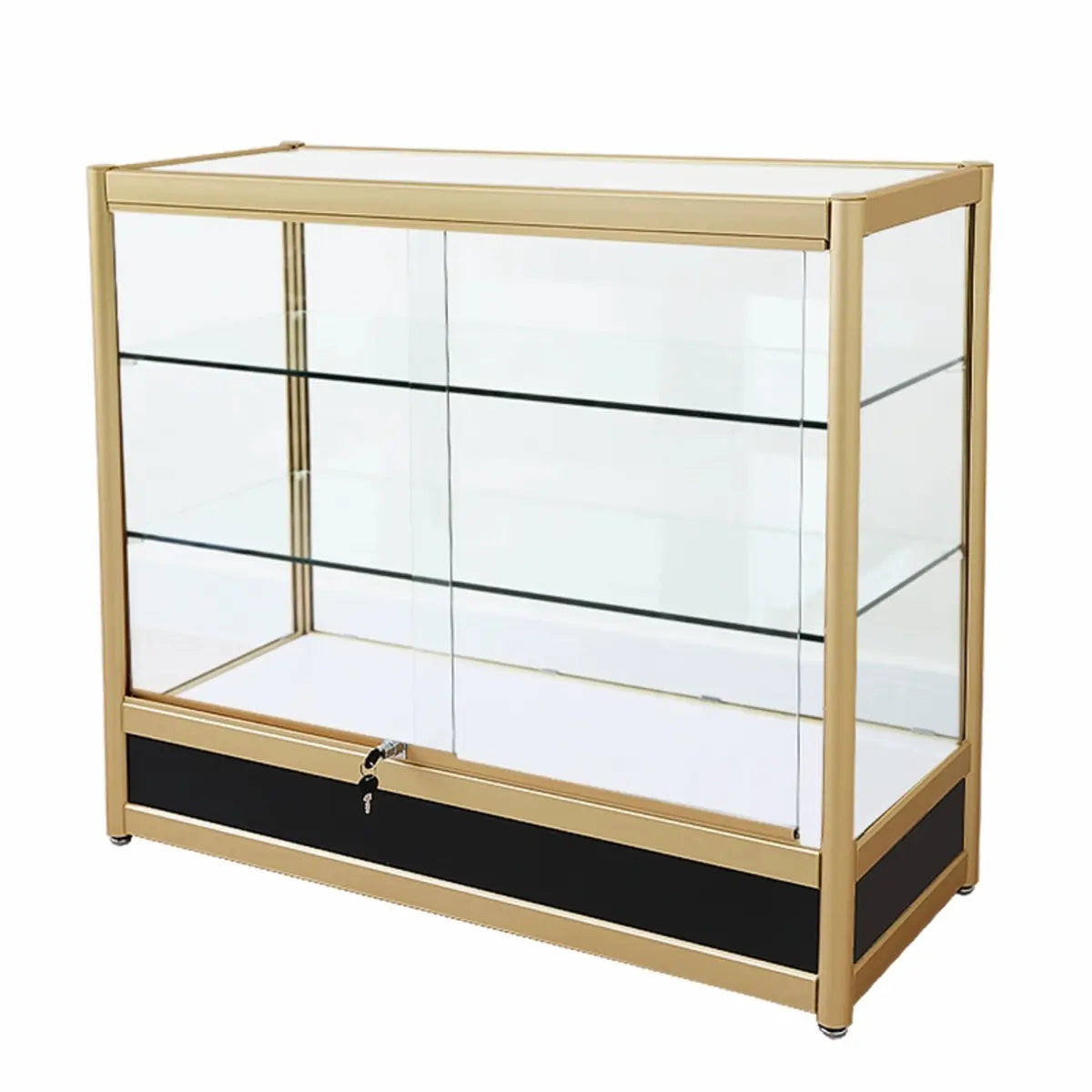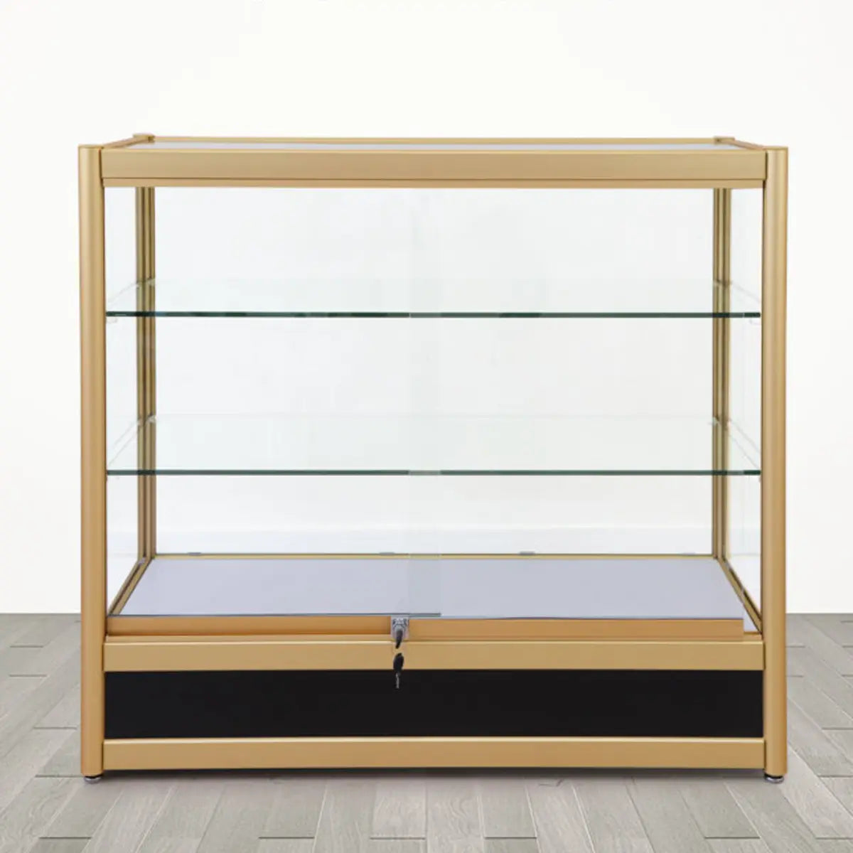 Rectangular Gold Metal Glass Short Curio Display Cabinet