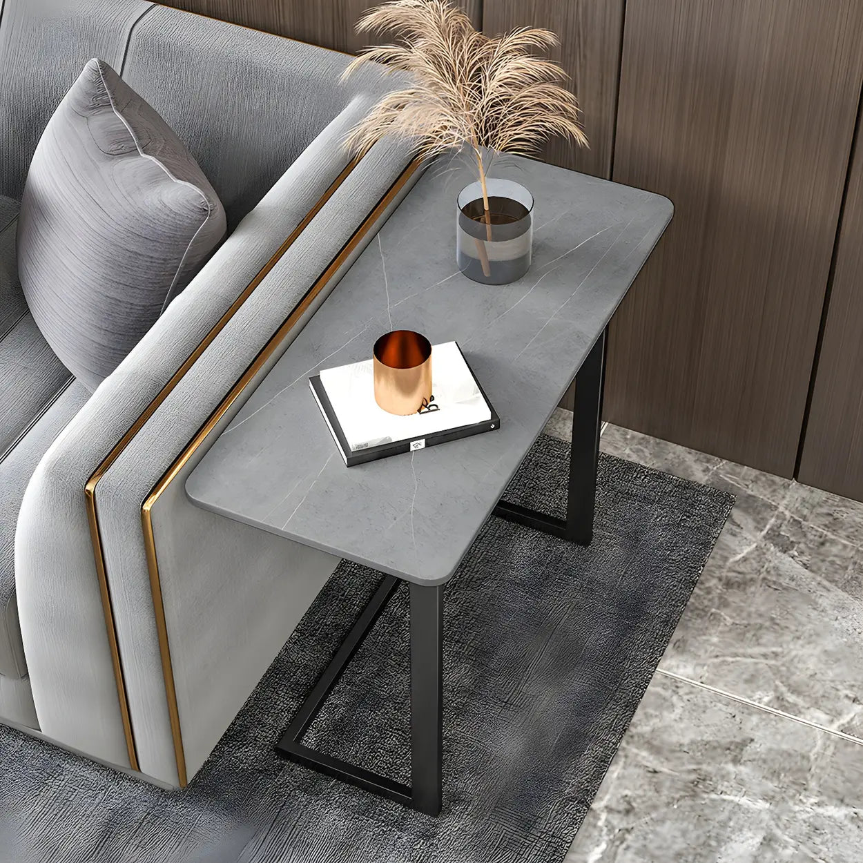 This stylish and modern side table has a sophisticated design and features a high-grade sintered stone top and a gold metal frame, perfectly combining luxury and practicality. Its simple rectangular design not only saves space but also adds elegance to your home environment. Whether placed next to the sofa, beside the bed or in the corner of the office, this table can do the job and provide a convenient surface for storing books, drinks or decorative items.