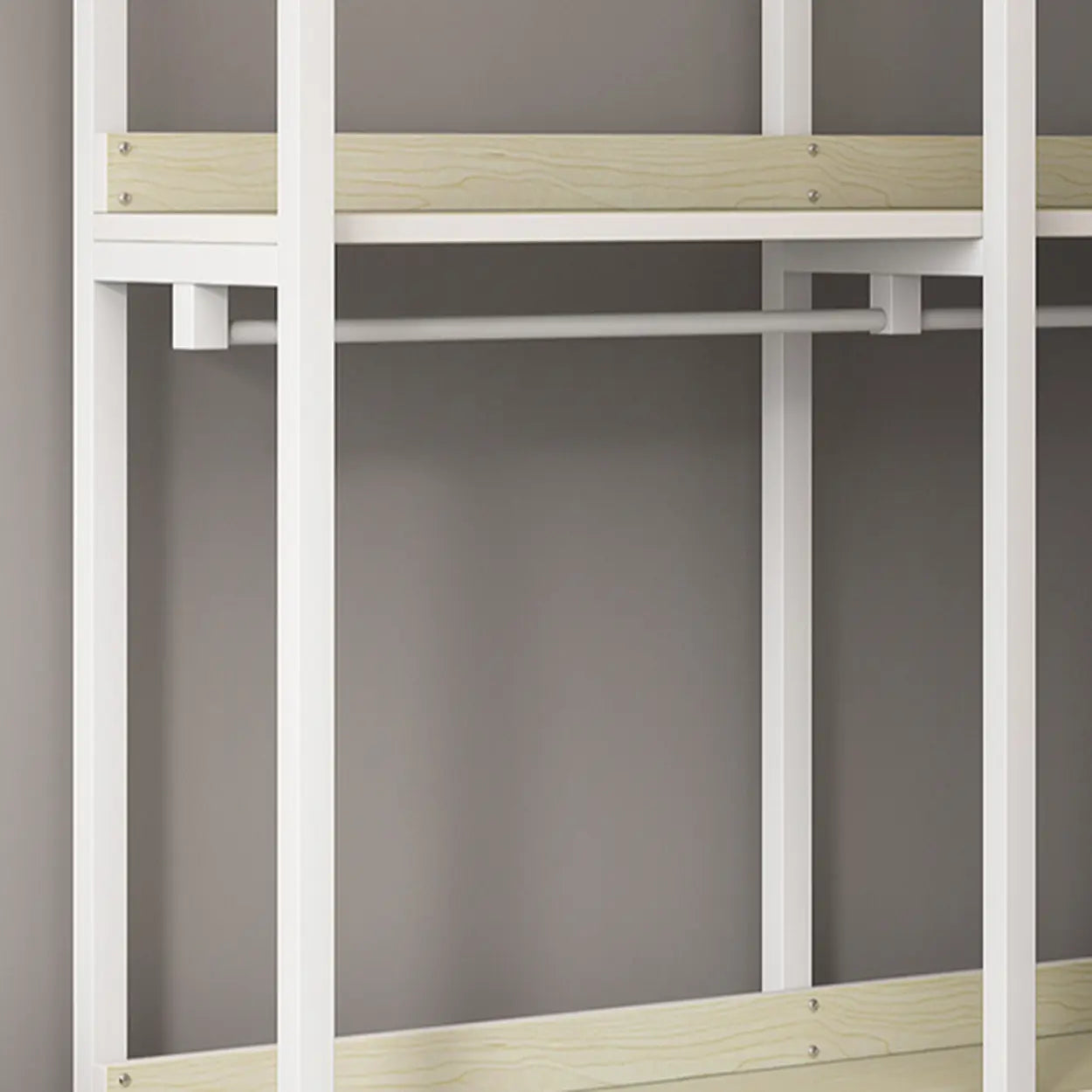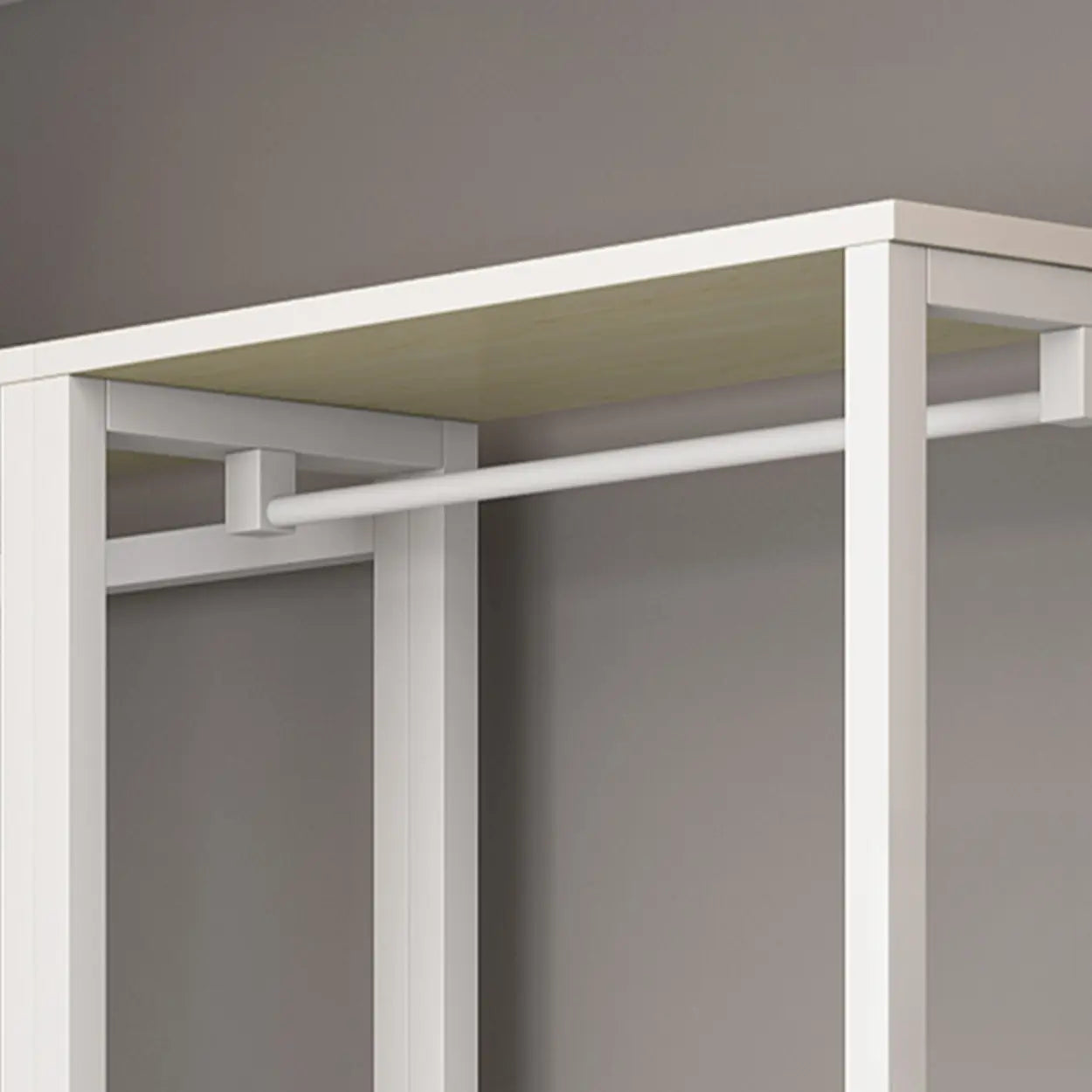 Rectangular Metal White Storage Stand Shelves Coat Rack
