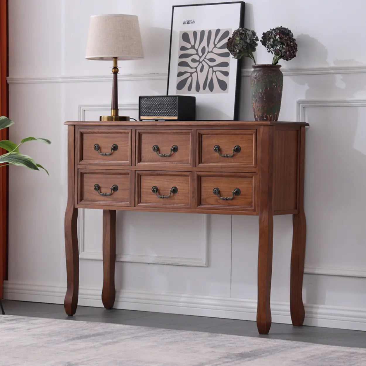 This vintage-style console table is a perfect blend of classic and modern, made from premium dark walnut for an elegant feel. Whether placed in the living room or hallway, the six-drawer design provides ample storage space, effectively keeping the room tidy and organized.