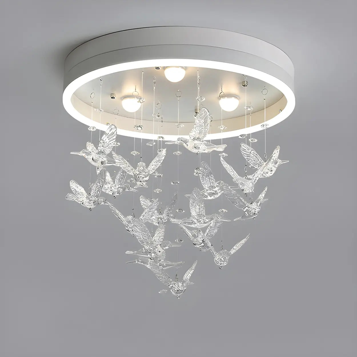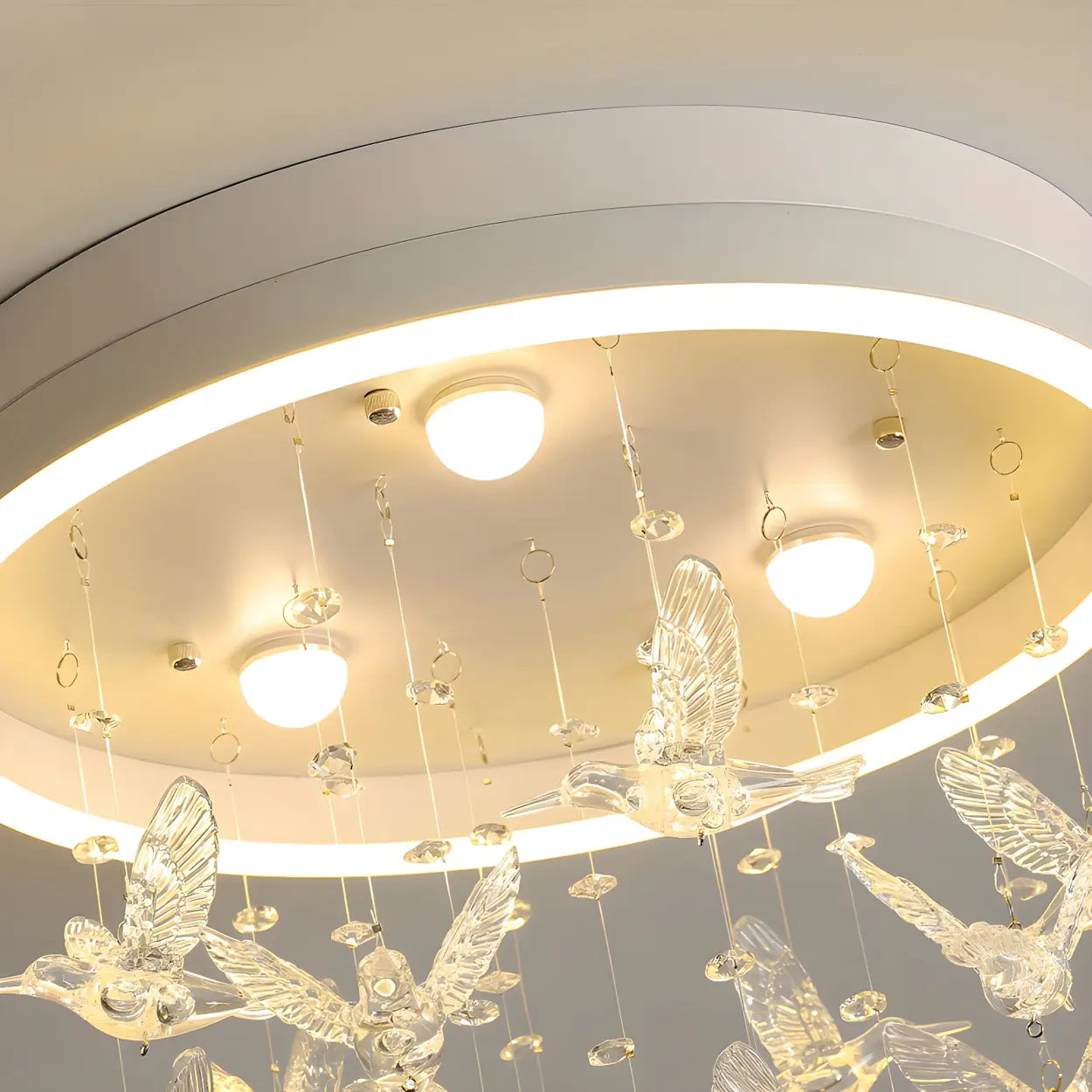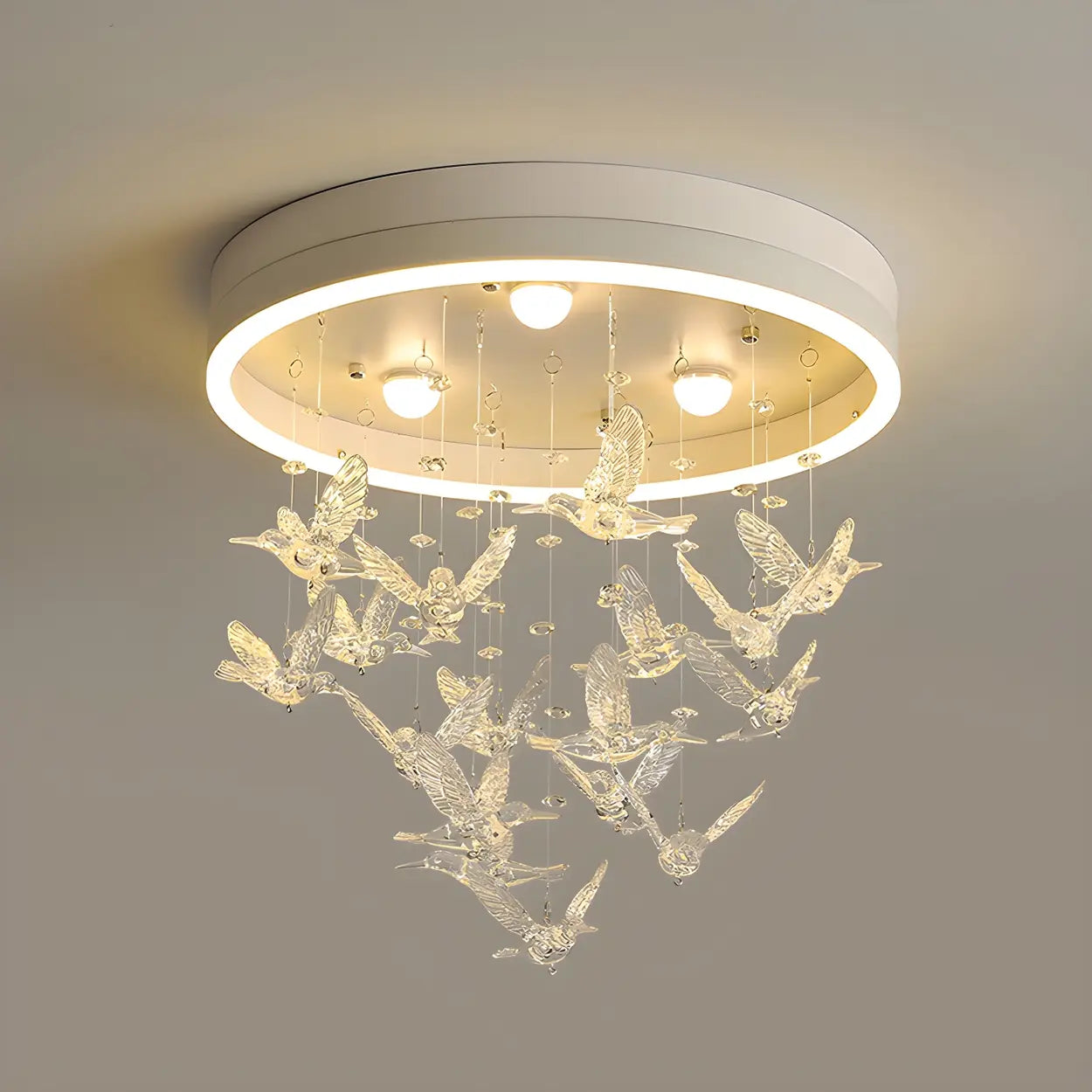 Romantic Bedroom Hanging Birds Drum Flush Mount Light