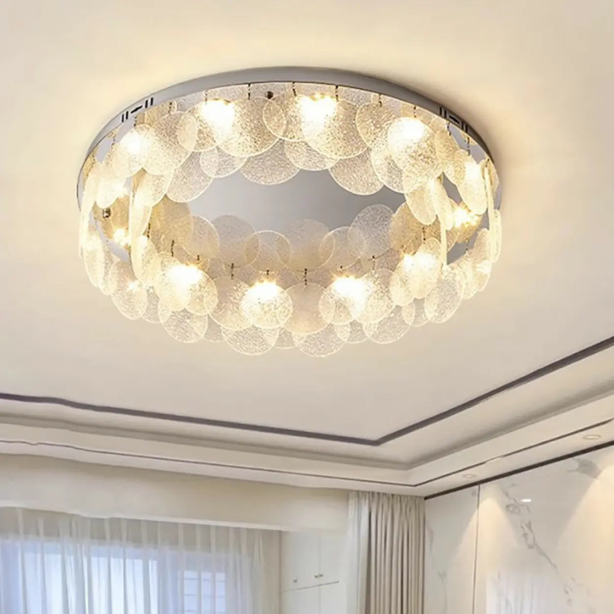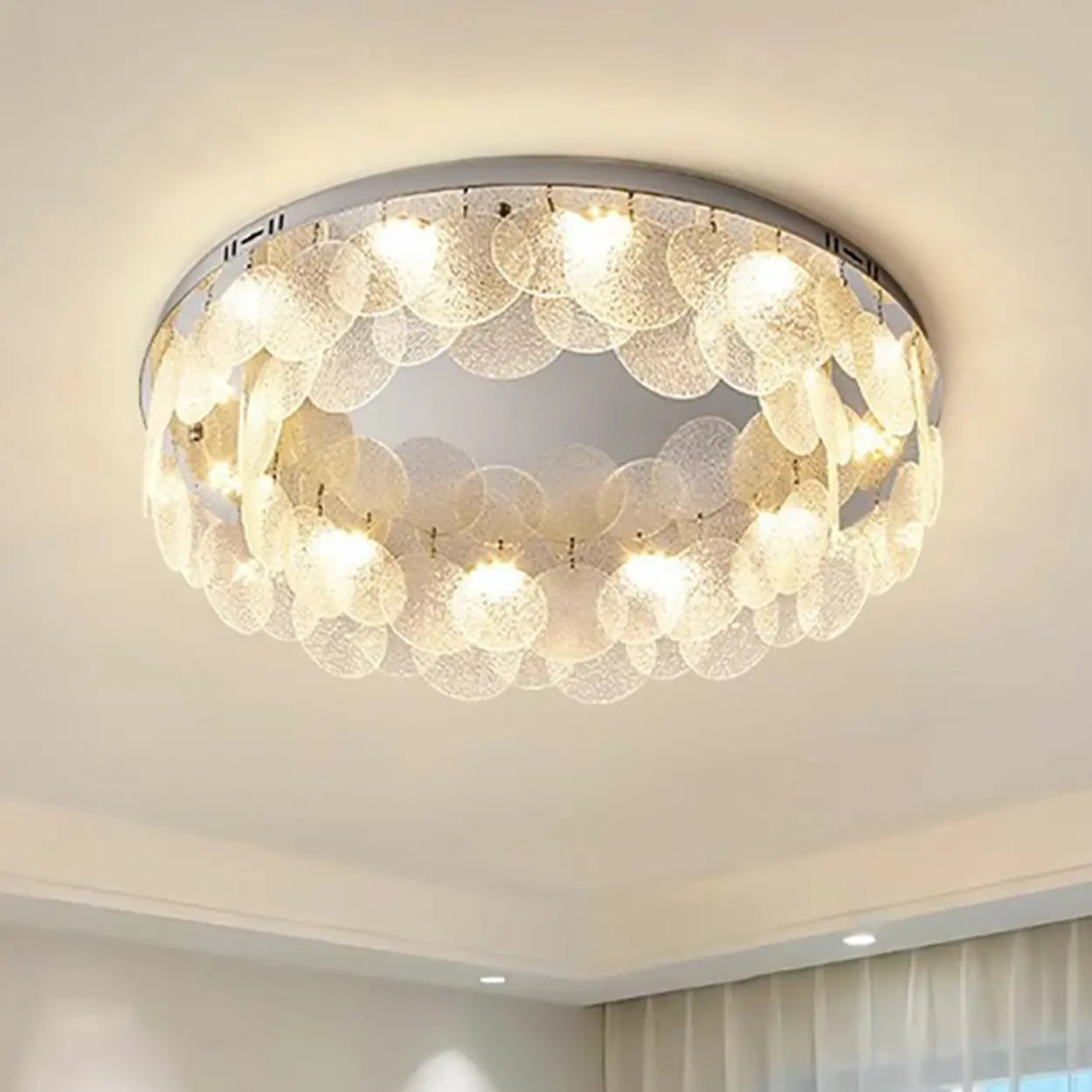 Round Clear Glass Flake Flush Mount Ceiling Light