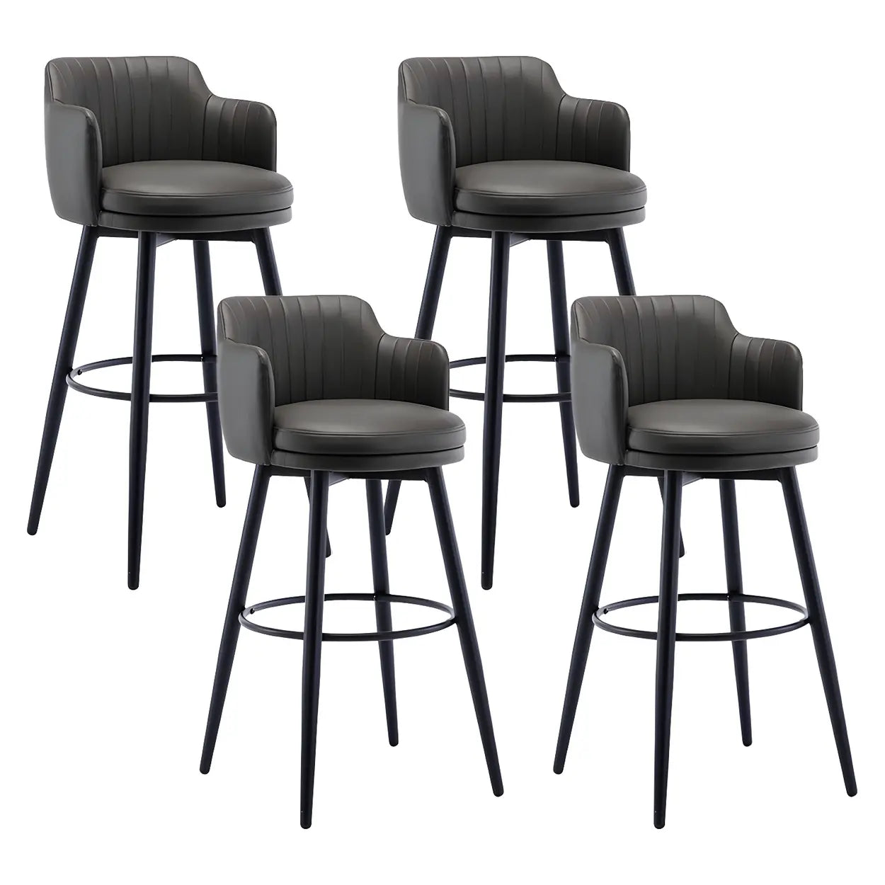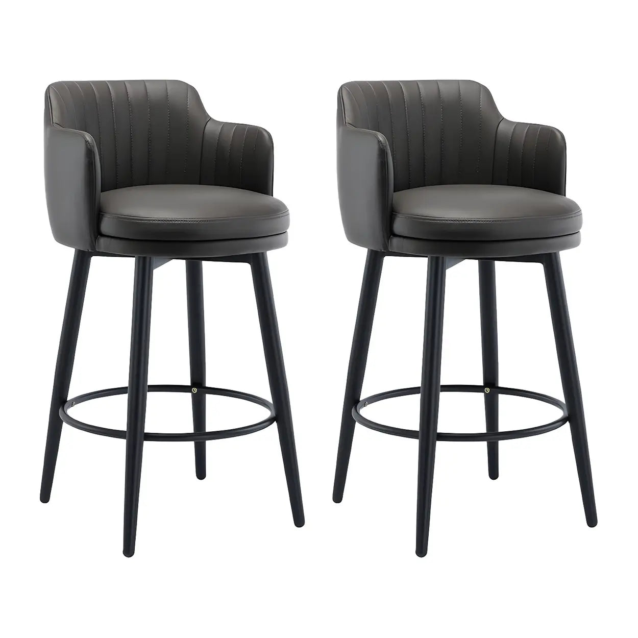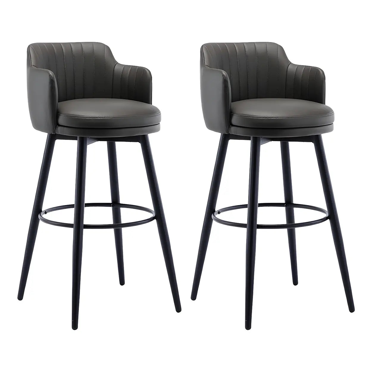 Round Leather Backrest Arm Black Iron Base Bar Stool