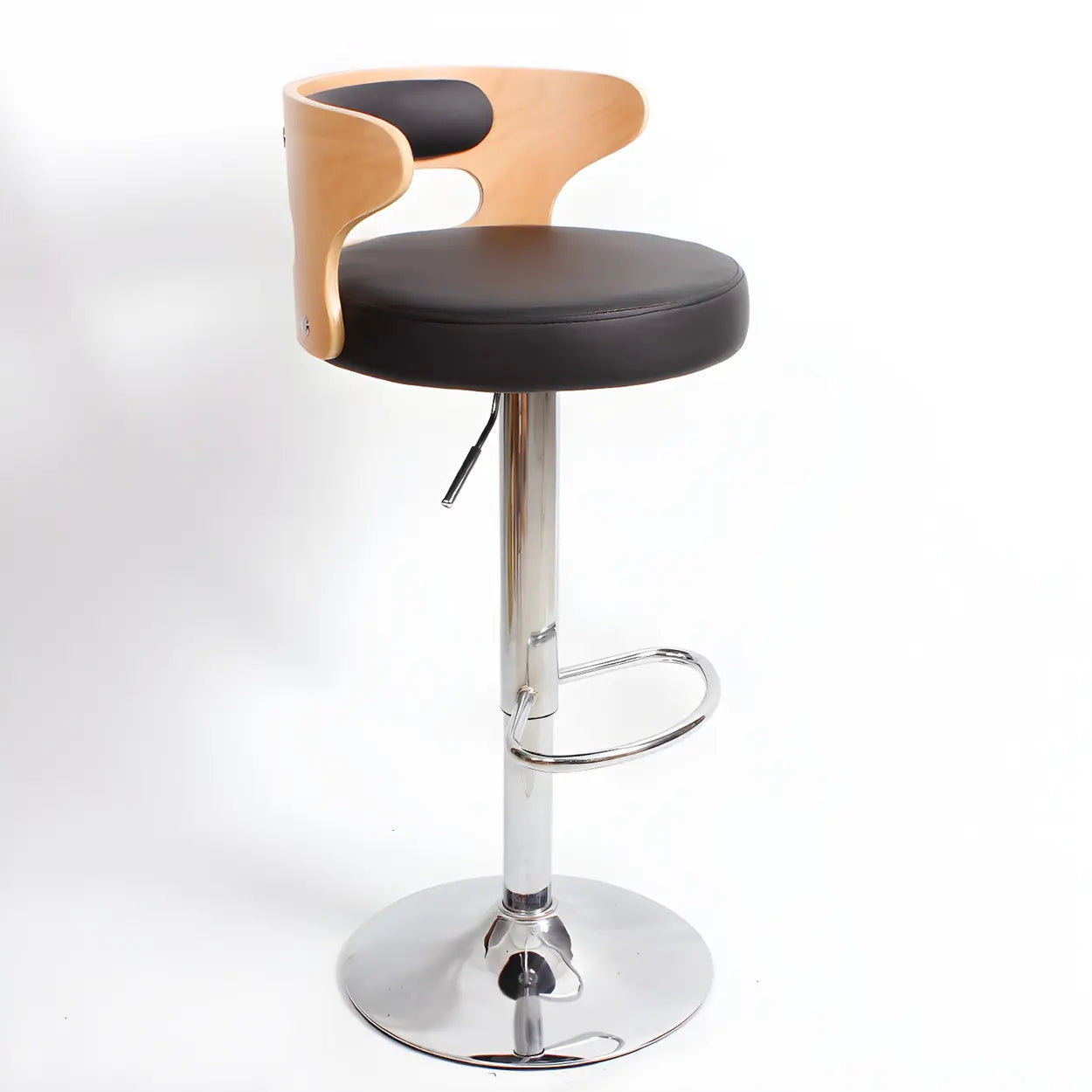 Round Leather Seat Adjustable Pedestal Swivel Bar Stool