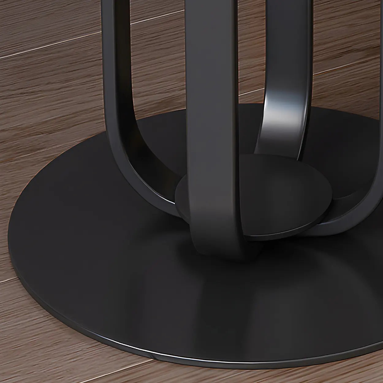 Round Stone Top Black Stainless Steel Pedestal Side Table
