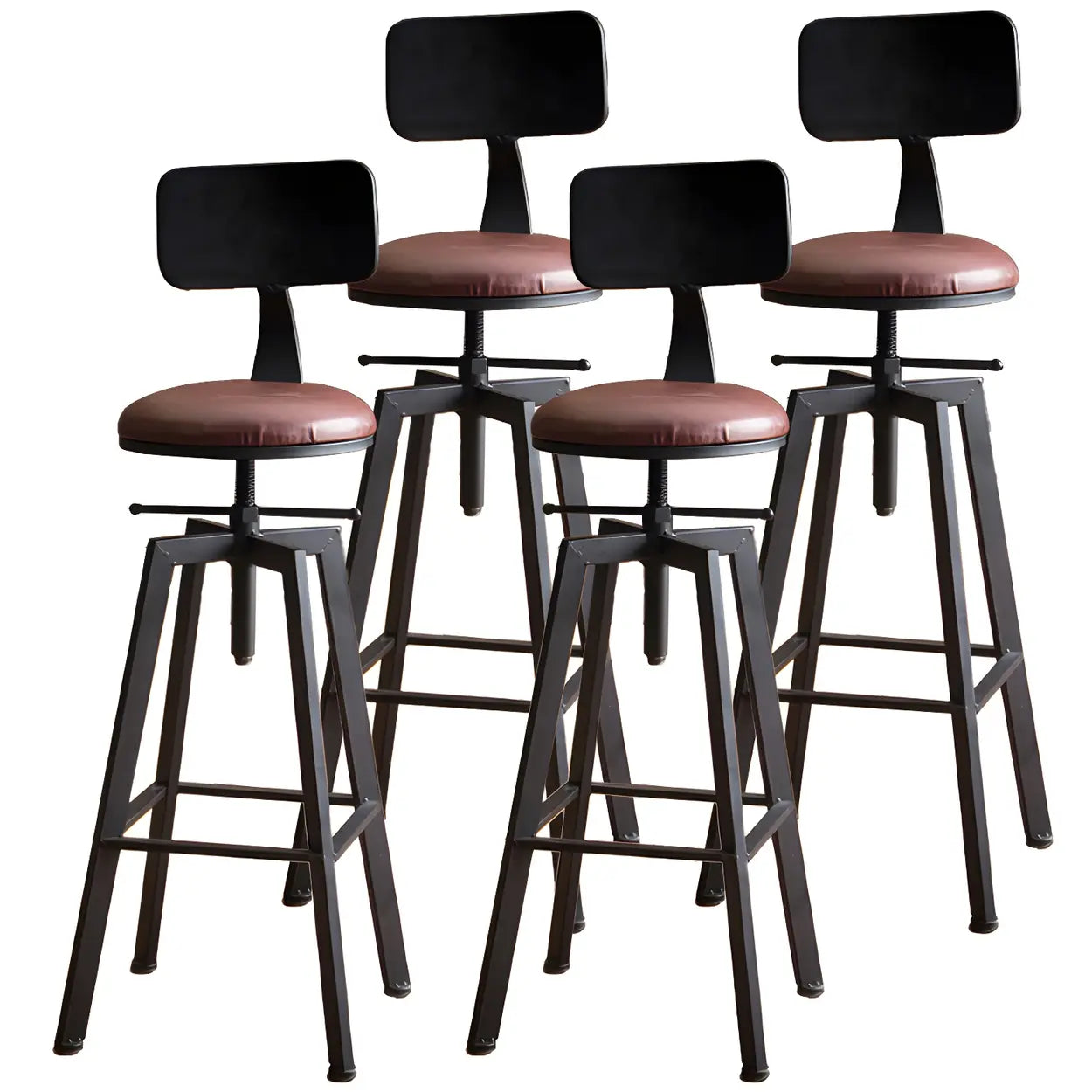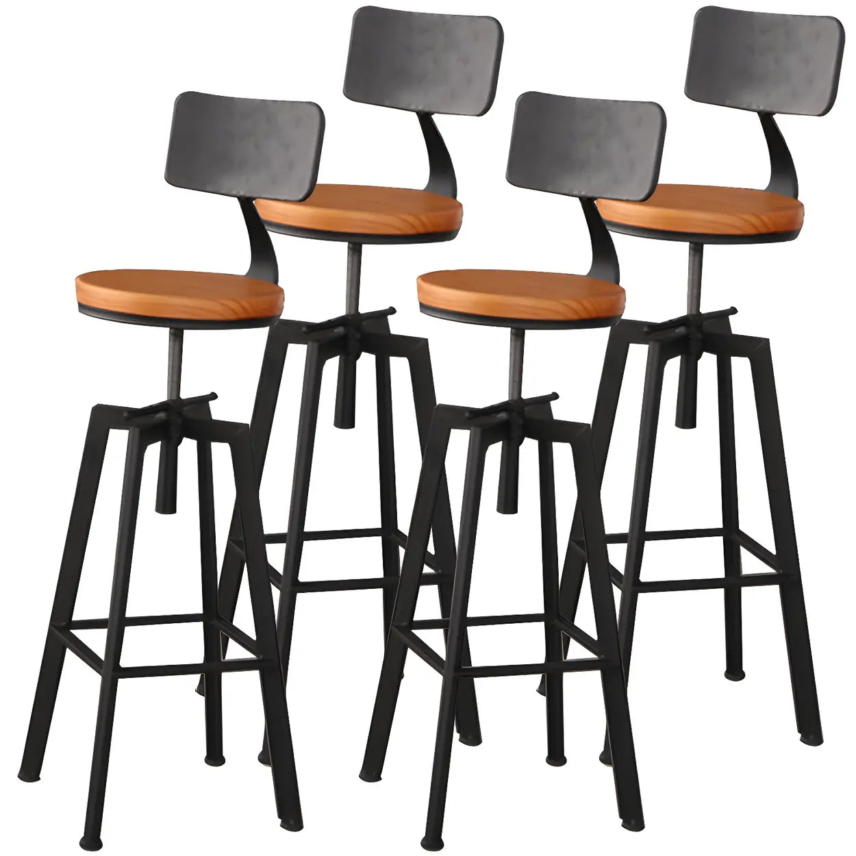 Round Wood Backless Metal Four Legs Counter Bar Stool