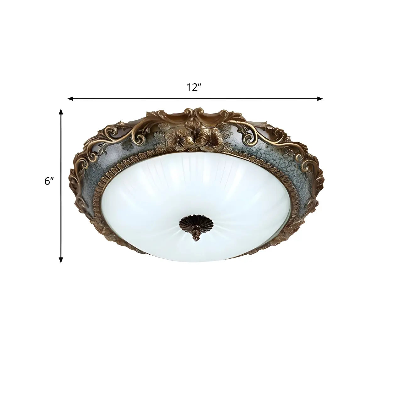 Rustic Carving Resin Bowl-Shaped Brass Flush Mount Lamp