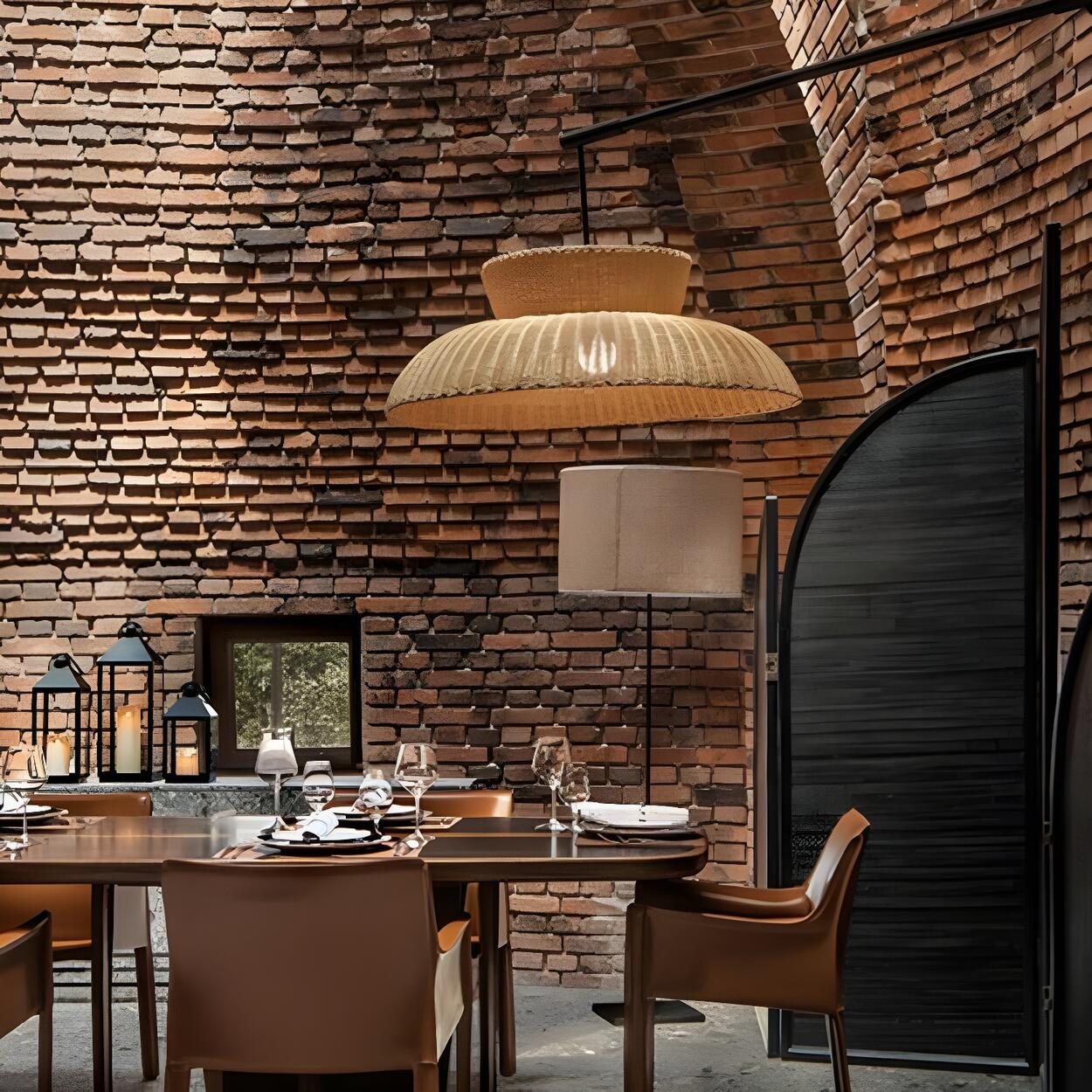 This rustic pastoral pendant light showcases its natural woven texture and layered design. The lampshade emits a soft glow when illuminated, creating a warm and comfortable atmosphere for the room. It well suits restaurants, living rooms, or cafes.