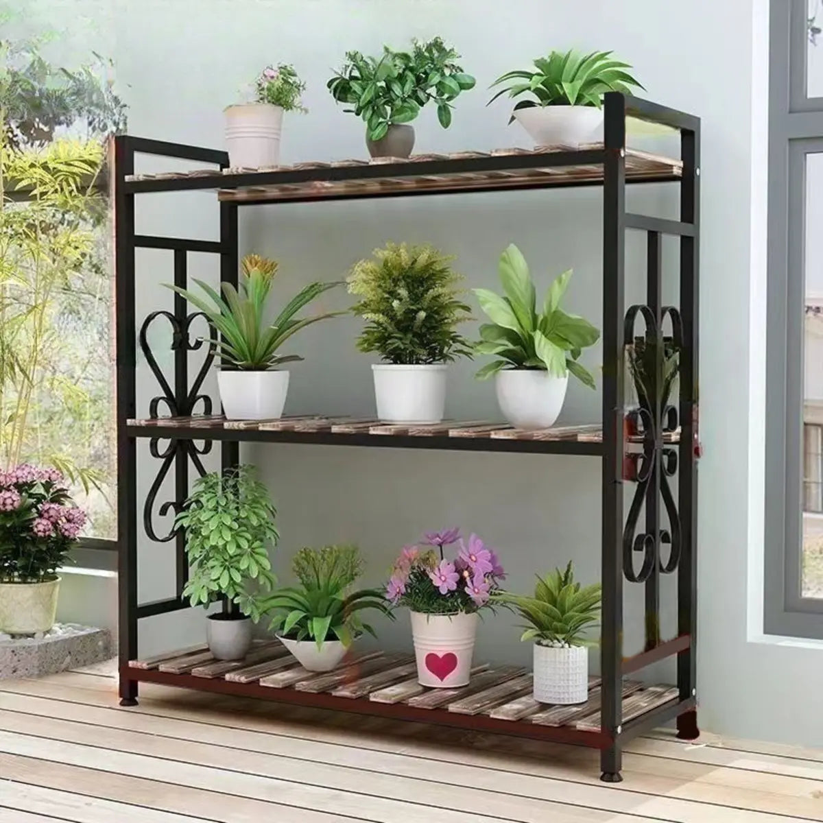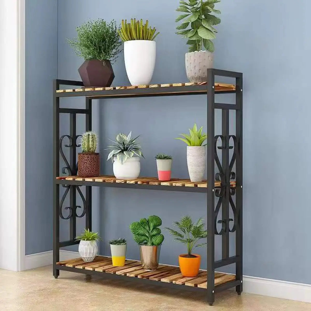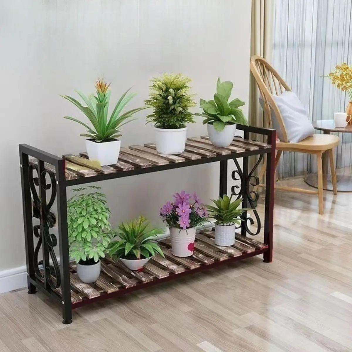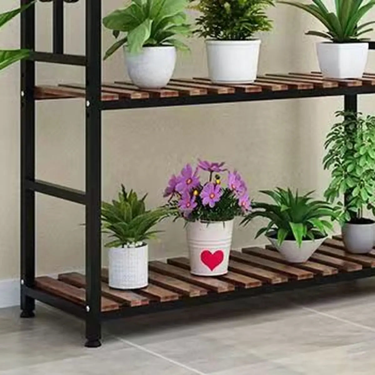 Made of pine and metal, this multi-layer plant stand is sturdy and reliable, presenting a unique country style, and adding a natural sense to your home. It can effectively utilize indoor space, and can also fully display your plants to create a vibrant green corner. Whether in the living room, balcony, or office, it can perfectly blend in and become an eye-catching focal point.