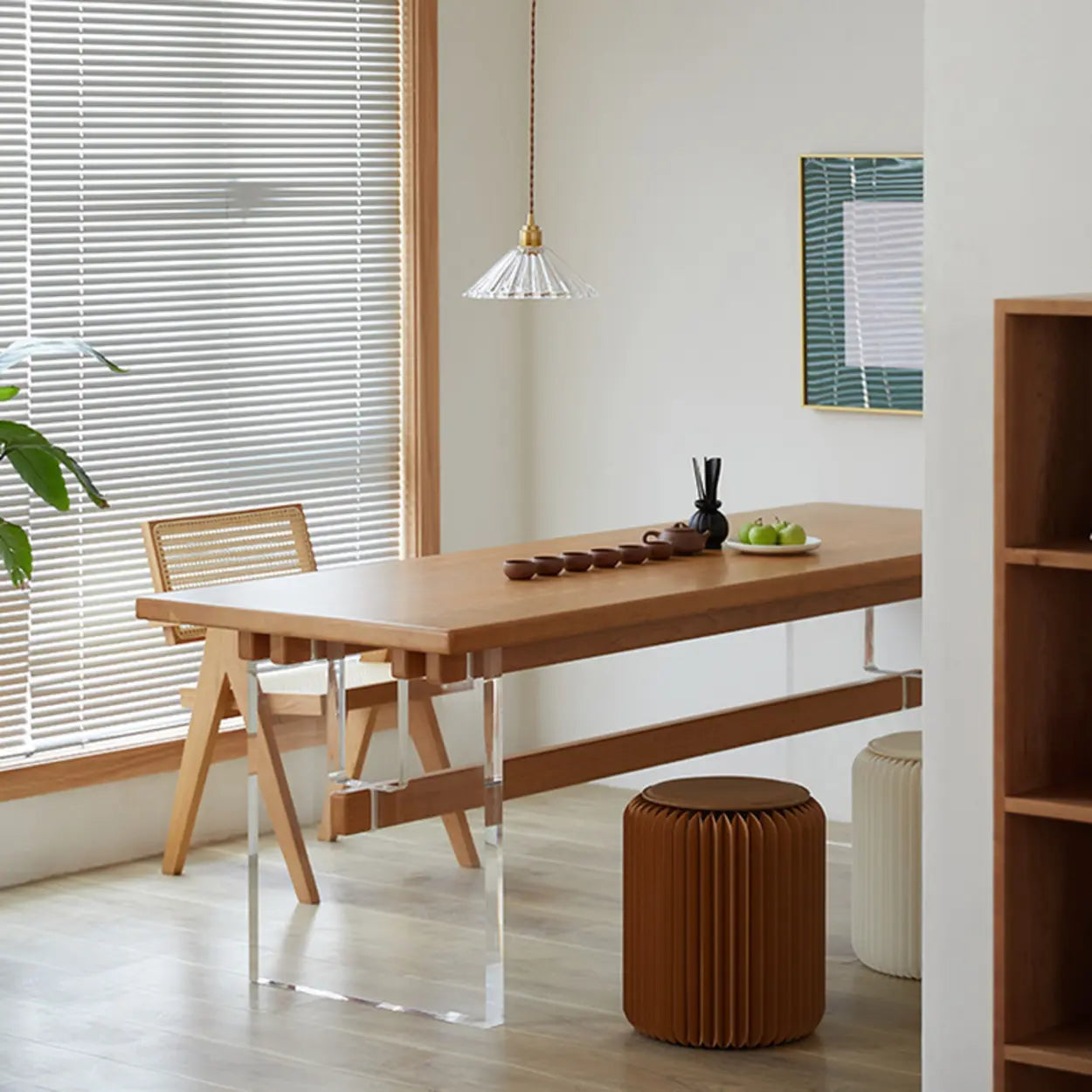 Scandinavian Acrylic Trestle Rectangular Wood Dining Table