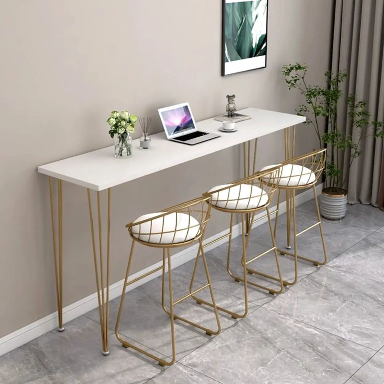 This minimalist white rectangular bar table seamlessly combines modern style with functionality, making it perfect for any occasion. Its elegant design and sturdy metal construction make it an excellent fit for domestic and commercial spaces, adding color to your kitchen, living room, or bar area.