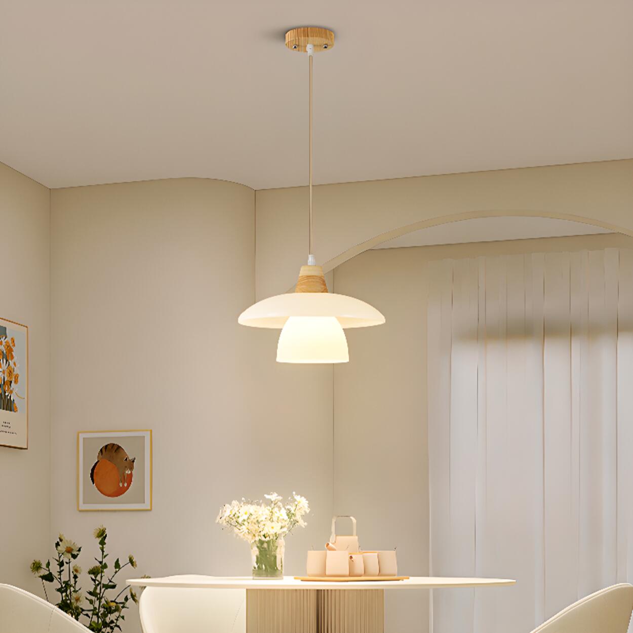 Scandinavian Layered Dome White Glass Pendant Light - Walnut is backordered and will ship as soon as it is back in stock.