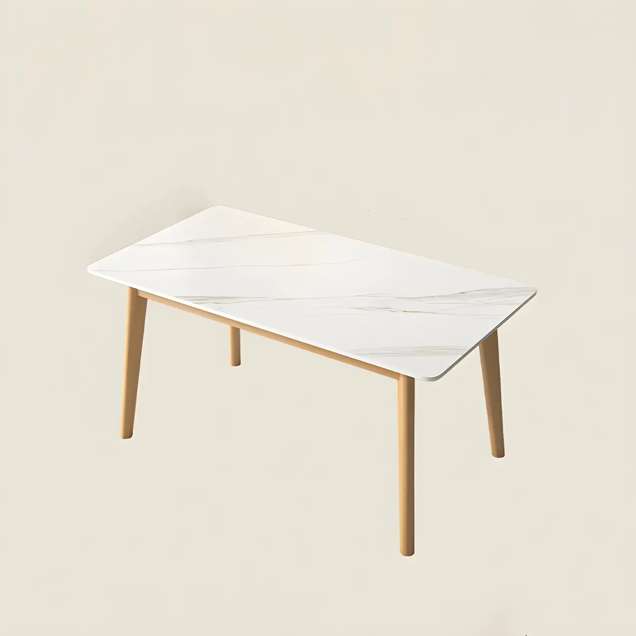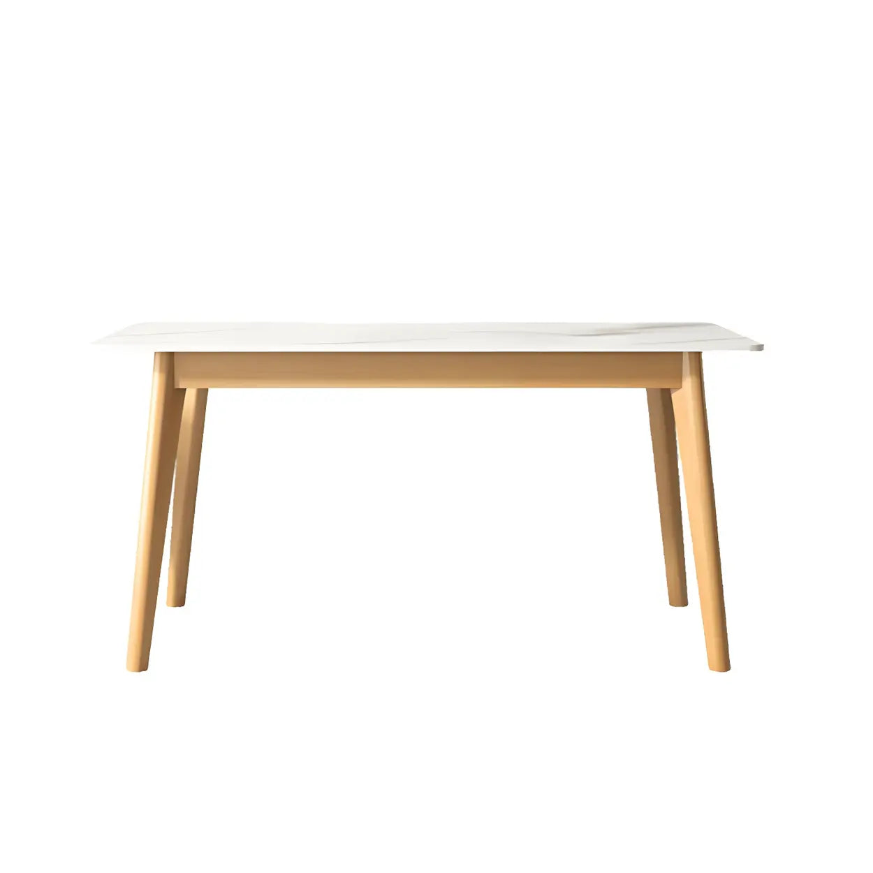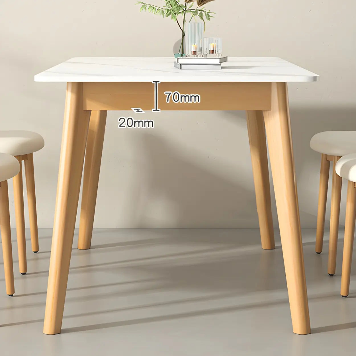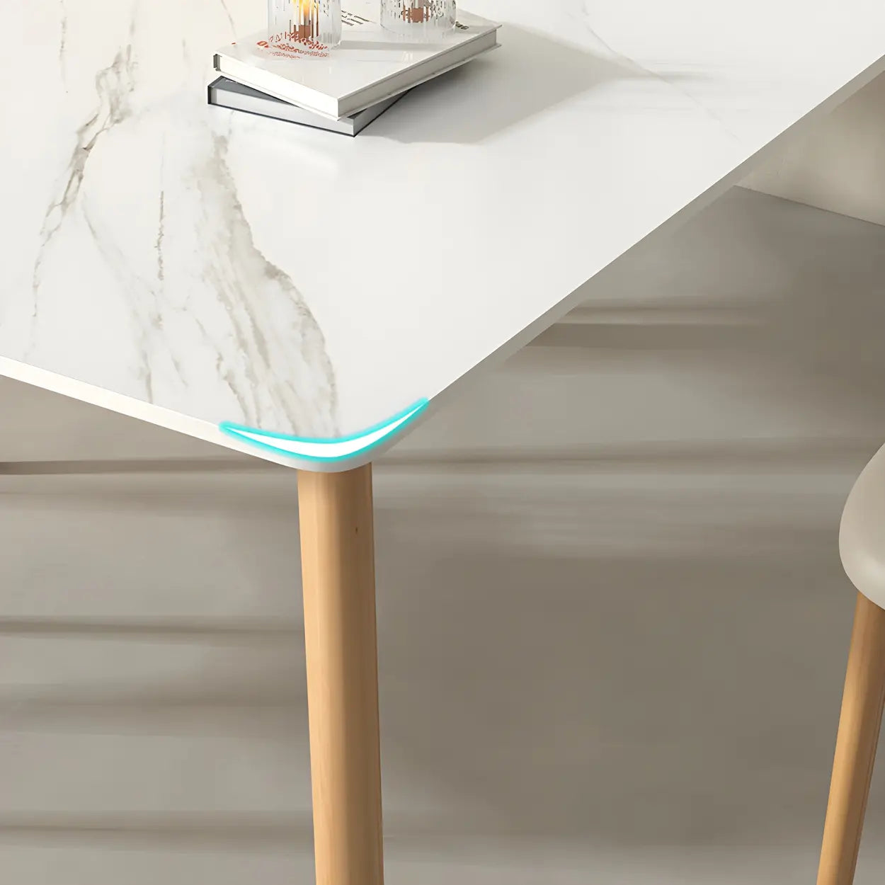 Coating the tabletop with high-quality white ensures a fresh and easy-to-clean surface. Providing natural wood legs creates a warm, inviting visual and tactile experience. Seating four people comfortably makes it ideal for family meals, parties, or game nights. Blending effortlessly into various home styles enhances the overall aesthetic. Pairing with comfortable chairs creates a cozy and stylish dining environment.