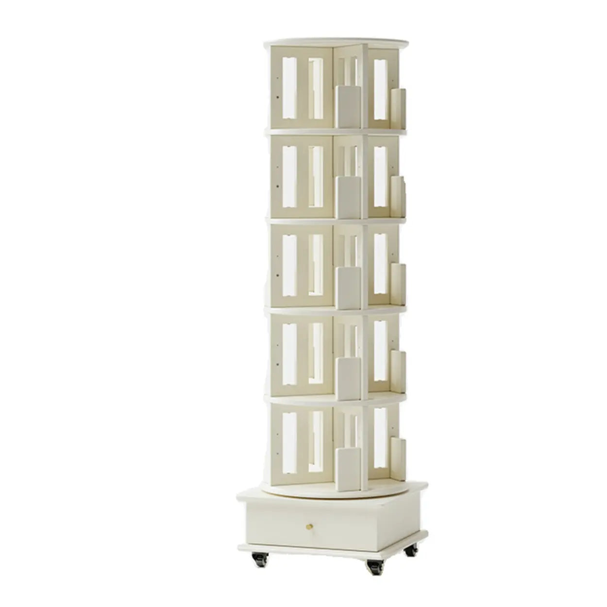This rotating bookshelf tower is designed to organize substantial collections in compact spaces. The vertical structure spins 360 degrees, providing instant access to novels and textbooks without requiring you to move around the unit. It offers a stable and stylish storage solution for bedrooms, living rooms, or home offices.