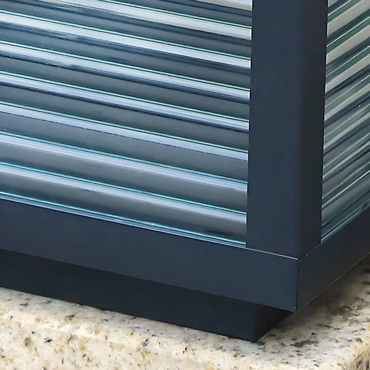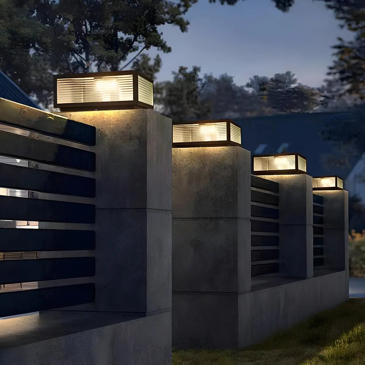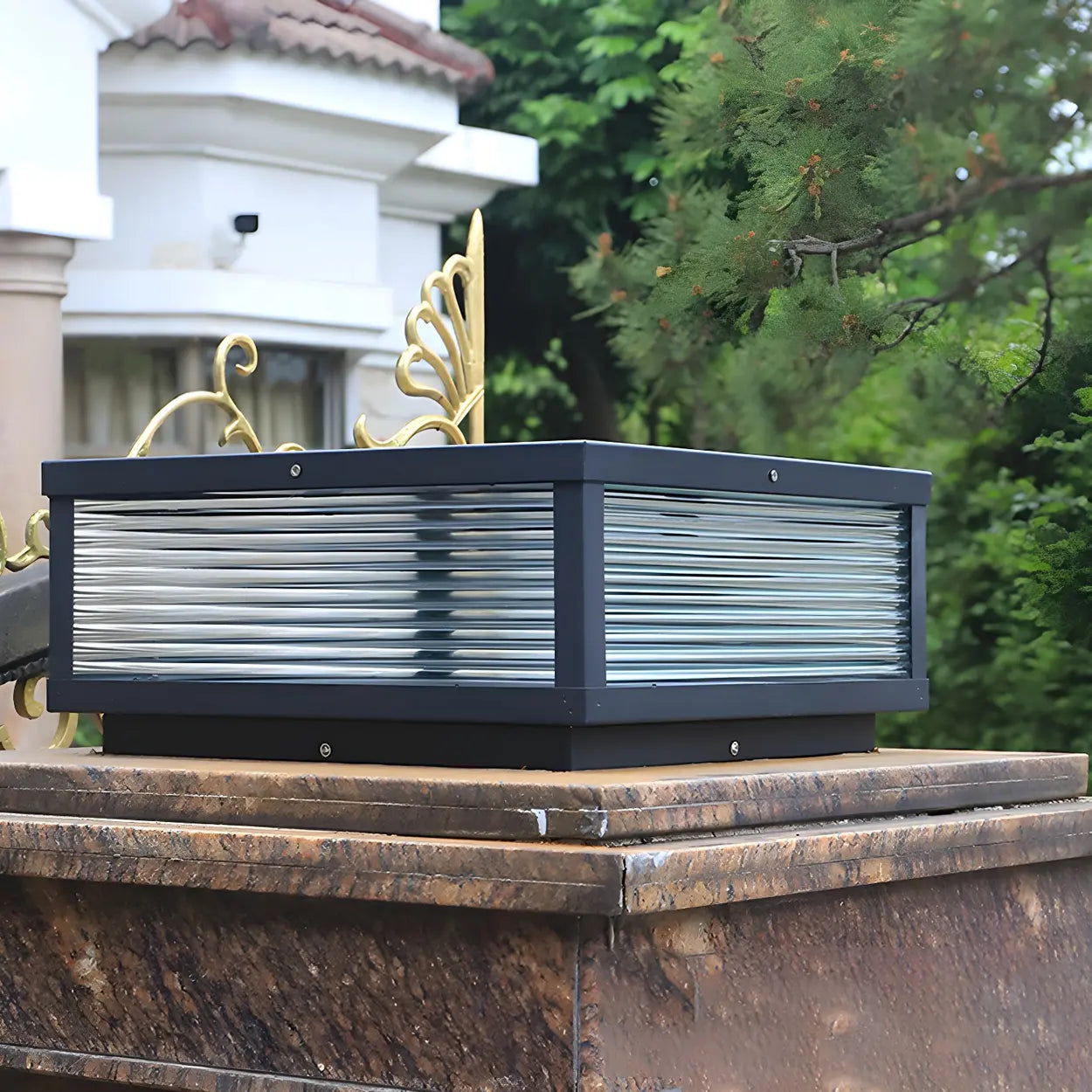 This modern lamp adds brilliance to your outdoor space and also enhances the elegance of the overall environment. Its black metal frame is paired with a transparent glass panel design, allowing the light to penetrate better and create a soft lighting effect.