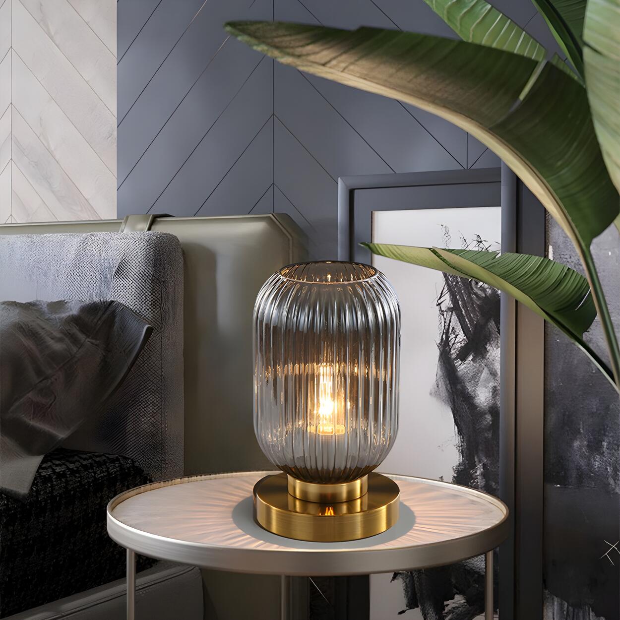 This modern geometric glass table lamp, with an elegant glass shade and brass base design, creates a unique light and shadow effect. It is perfect for the bedside or living room, adding fashion and warmth to your home.