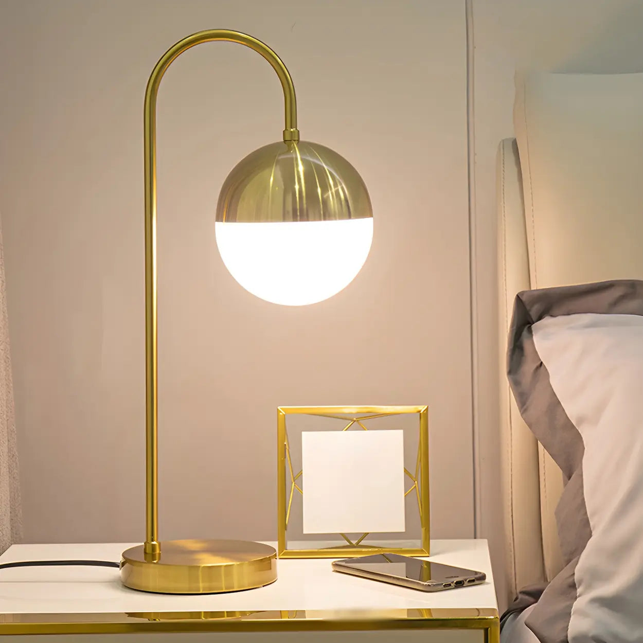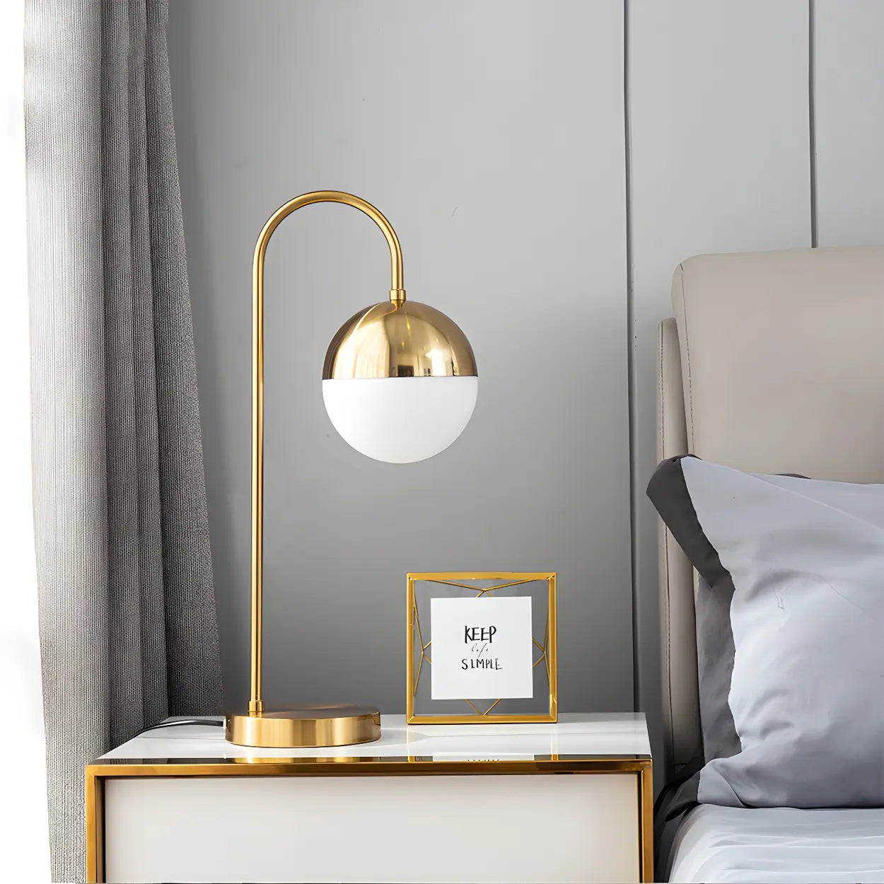 Simple Gold Gooseneck White Glass Shade Table Lamp
