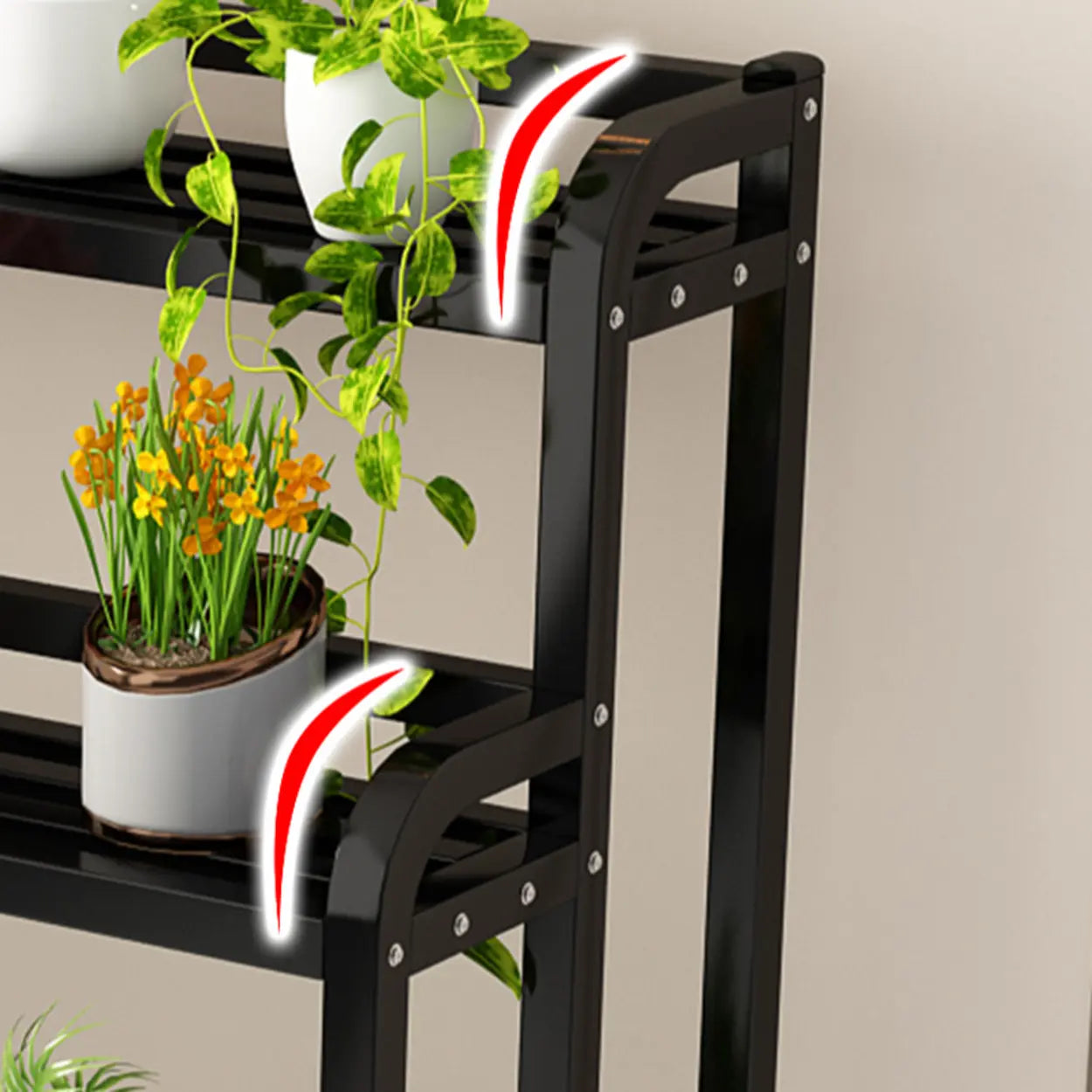 Simple Rectangle 3 Tiers Metal Sliding Plant Stand Black
