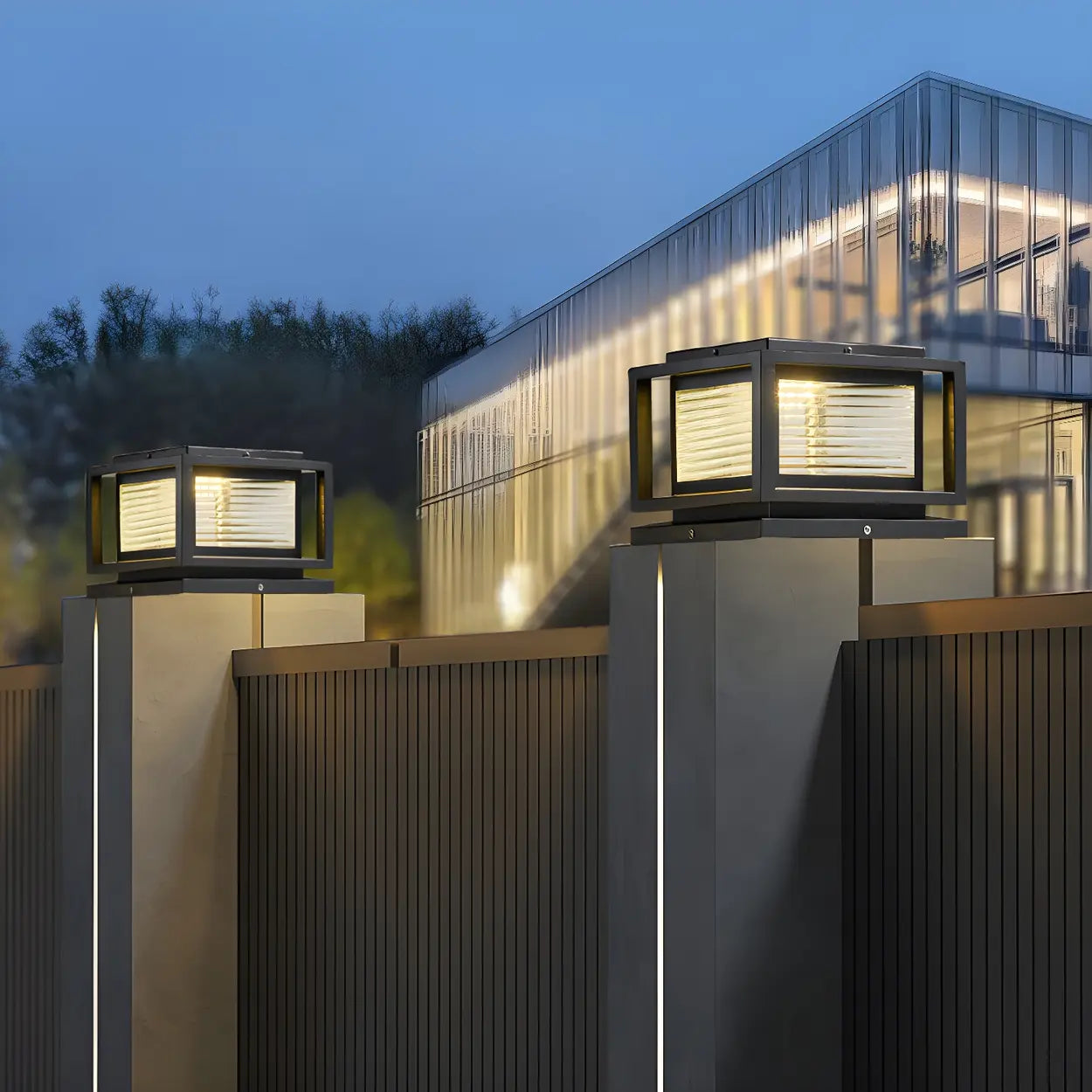 This modern square outdoor post light is composed of durable metal and is perfect for different settings, such as gardens, patios, or house entrances. Its simple and classic black appearance adds an elegant atmosphere. Whether as a lighting or a decorative element, it can show its unique charm. At night, it emits a warm and soft glow, building a comfortable and safe environment.