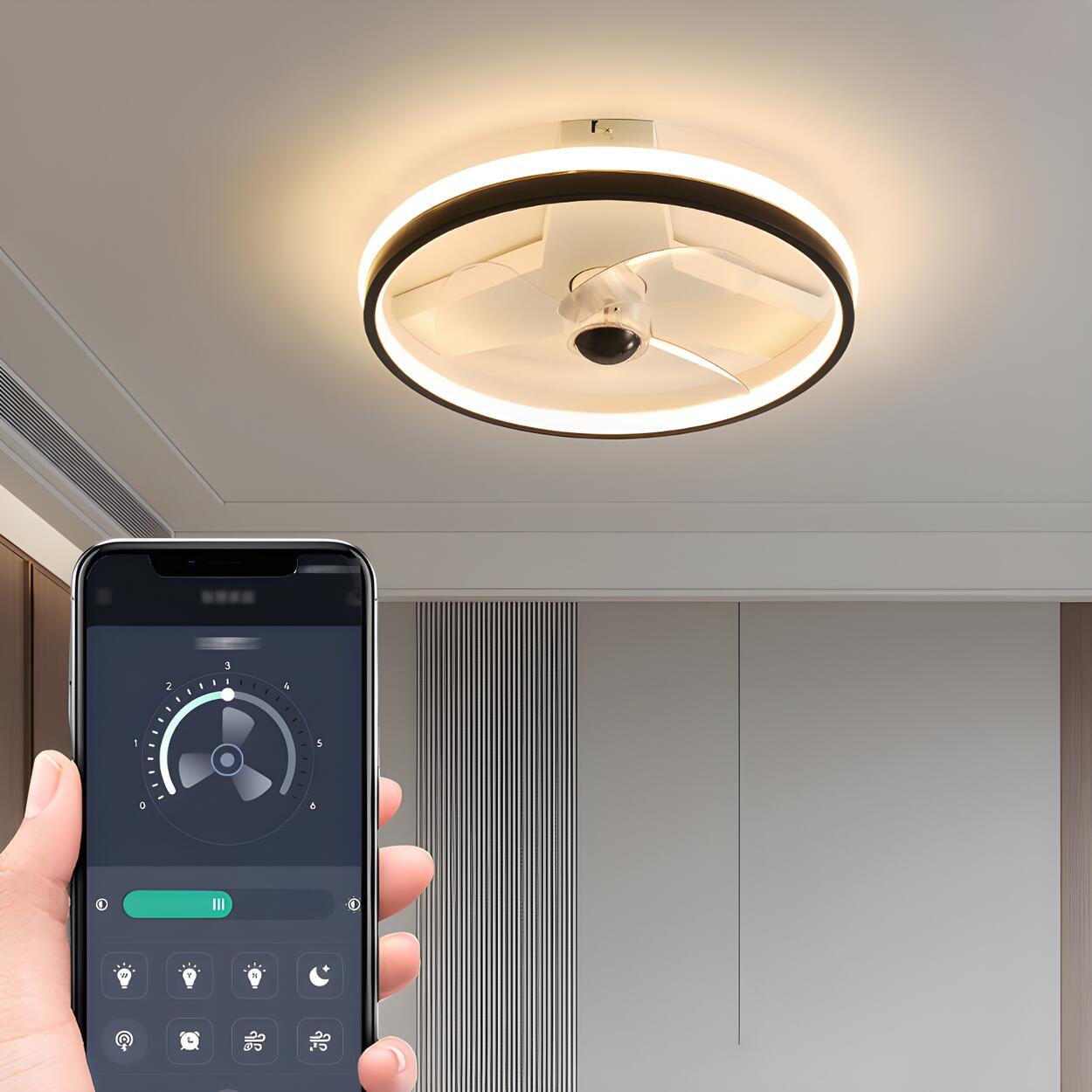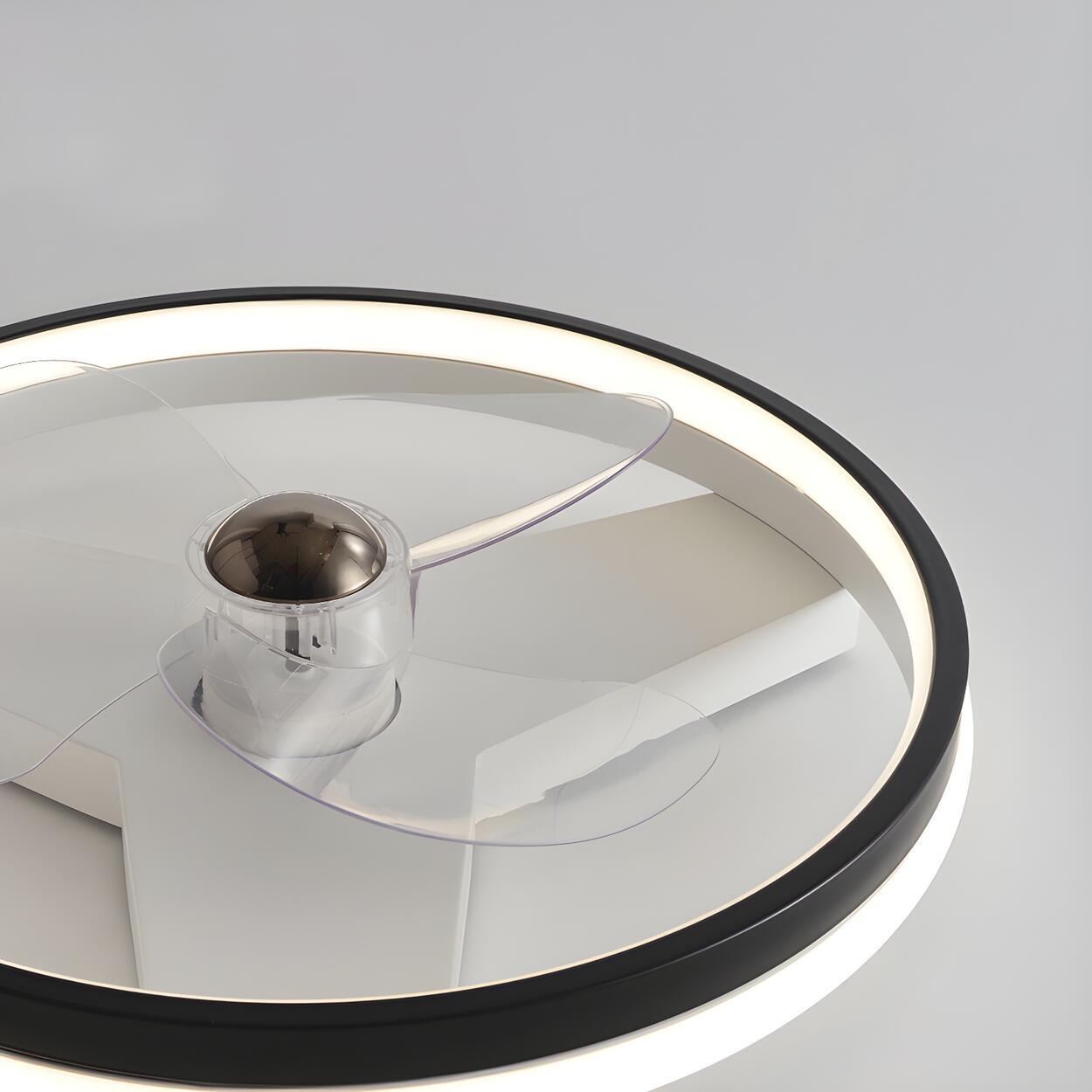 This modern circular LED ceiling fan light combines elegance and functionality. Its simple and elegant design not only saves space but also adds a modern touch to your room. The black exterior allows it to blend into any home style, whether modern, industrial, or minimalist.