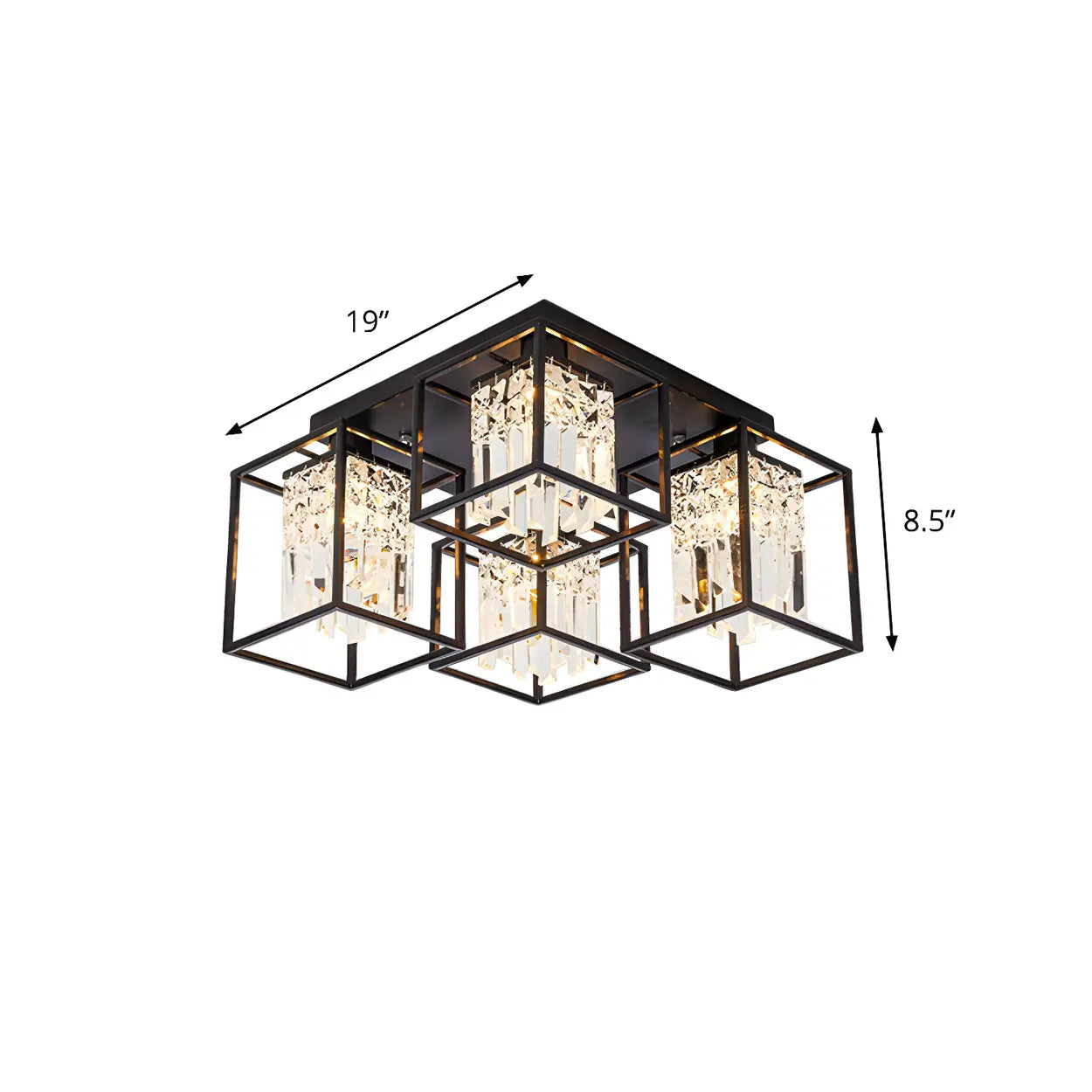Small Black Frame Cubic Crystal Flush Mount Lamp 4-Head