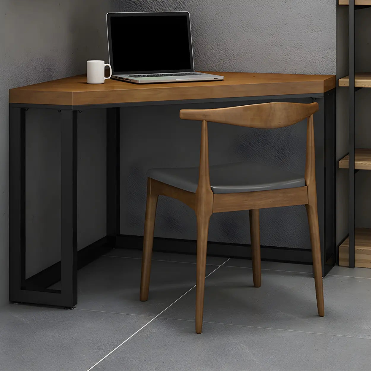 Designed for small spaces, the corner table saves space and delivers ample working area.