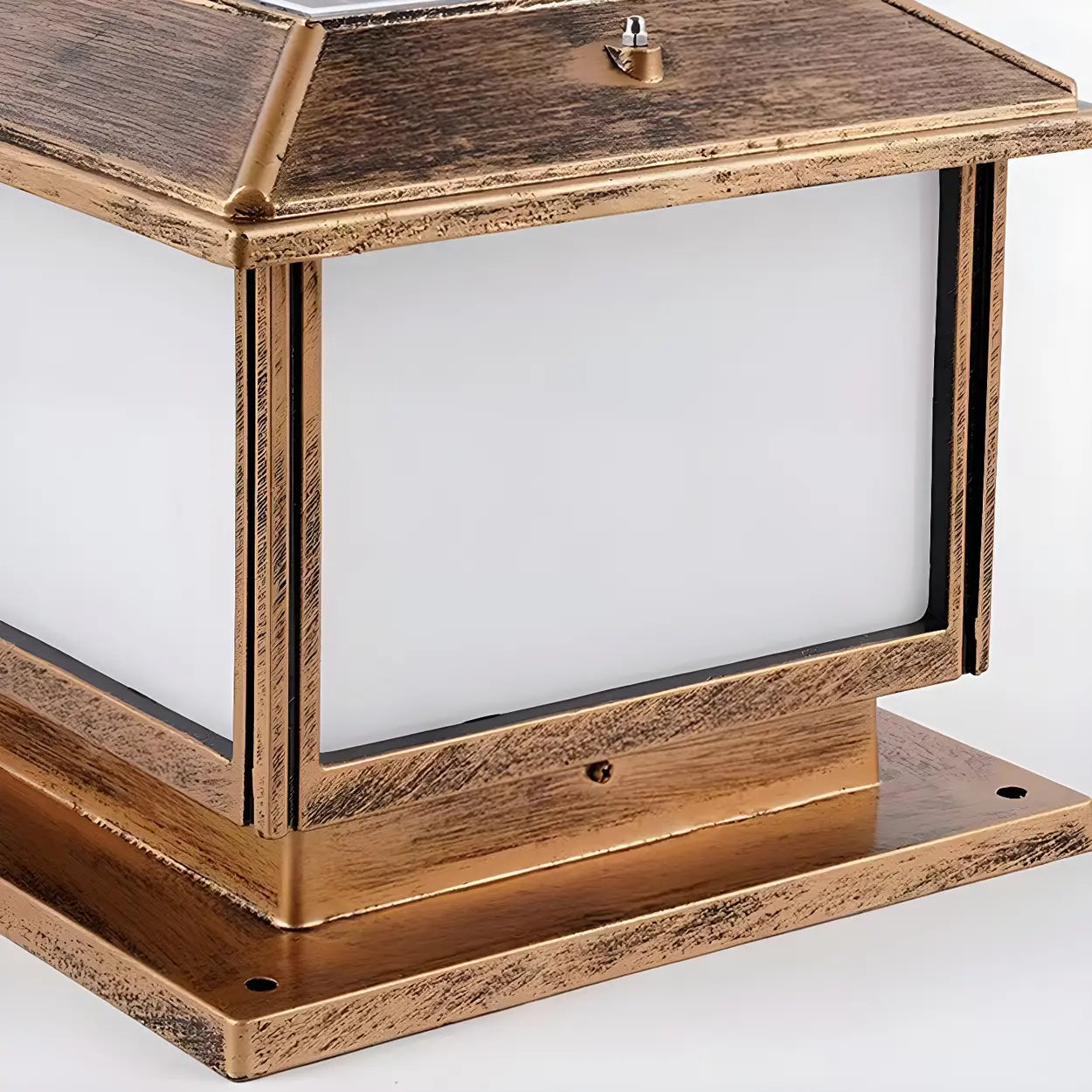 Square Vintage Metal Outdoor Solar Lantern Post Light