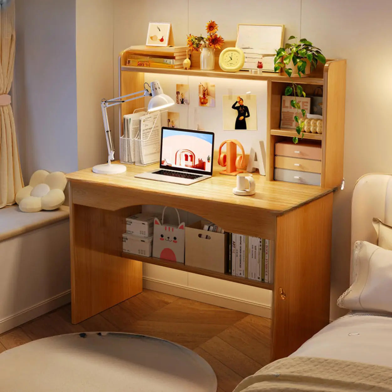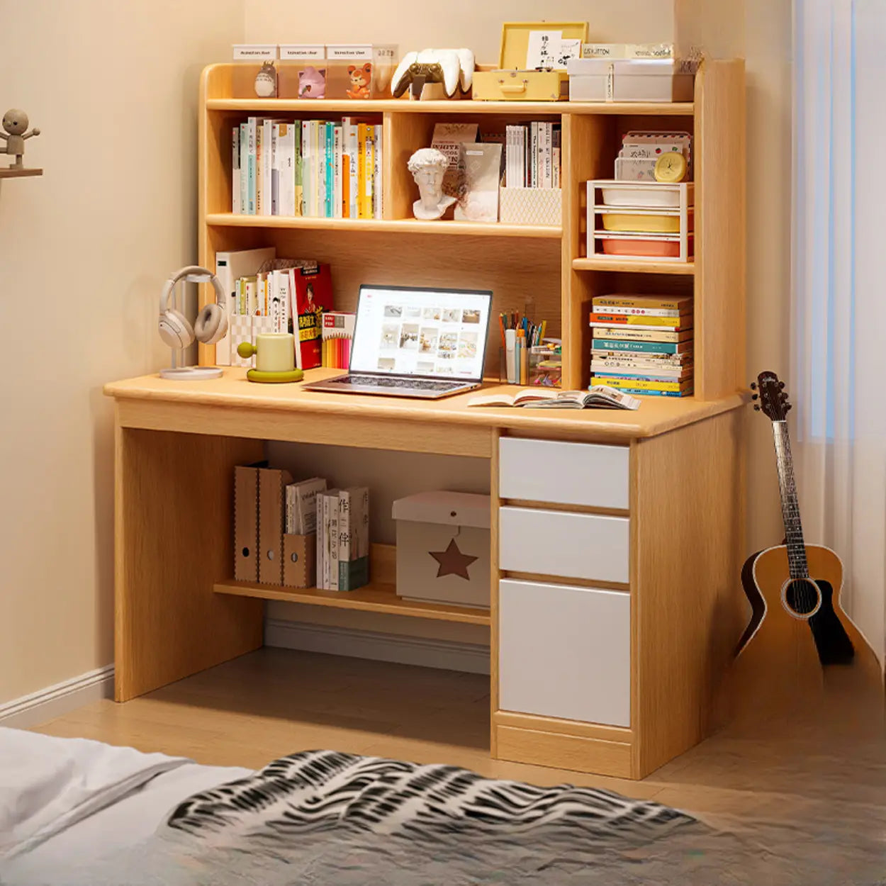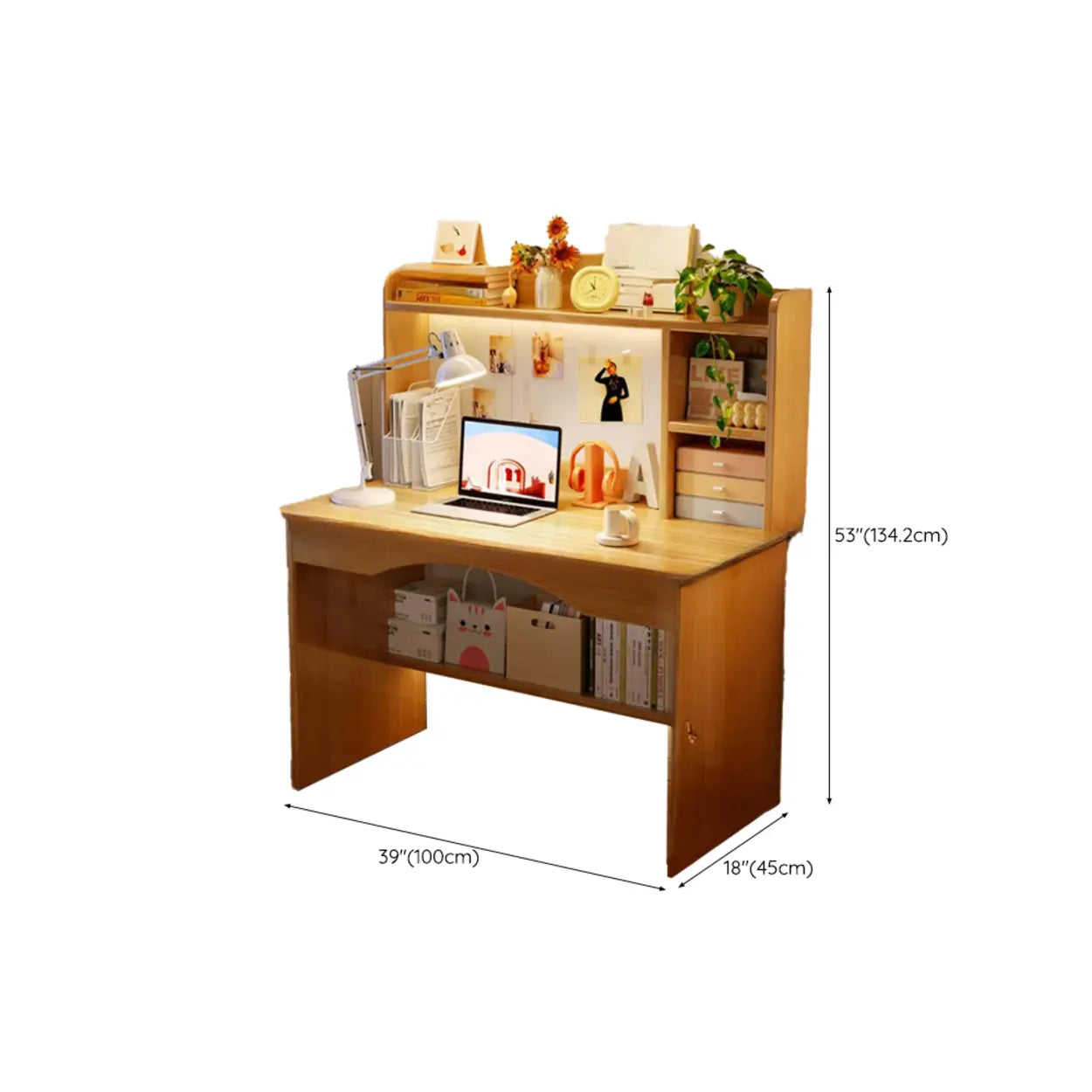 Standard Wooden Computer Desk with Hutch and Storage - Natural Finish / 39"L x 18"W x 63"H / Table Only is backordered and will ship as soon as it is back in stock.