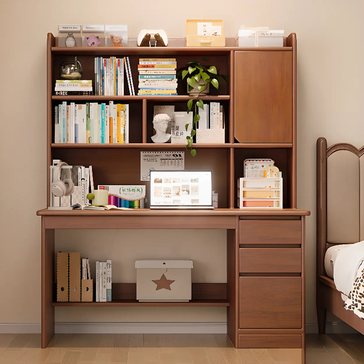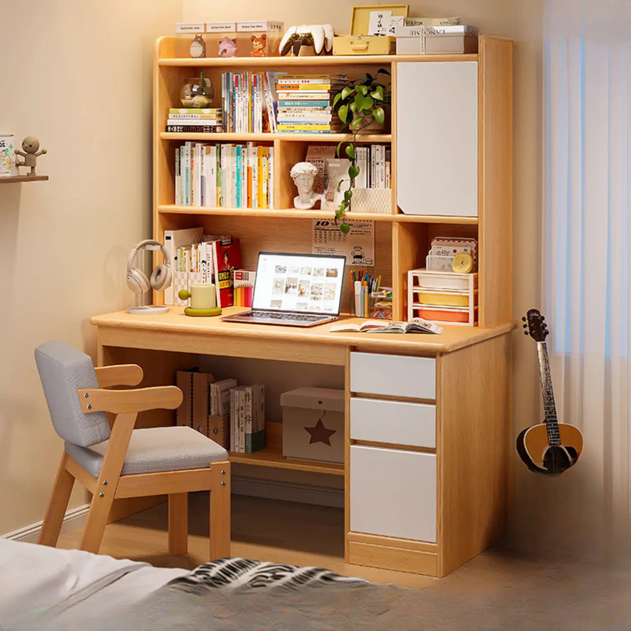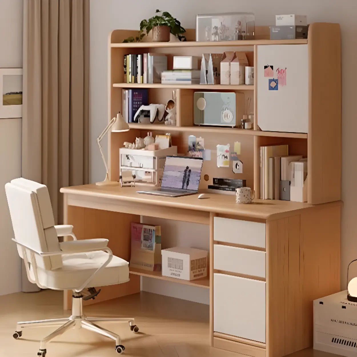 Standard Wooden Computer Desk with Hutch and Storage - Natural Finish / 39"L x 18"W x 63"H / Table Only is backordered and will ship as soon as it is back in stock.