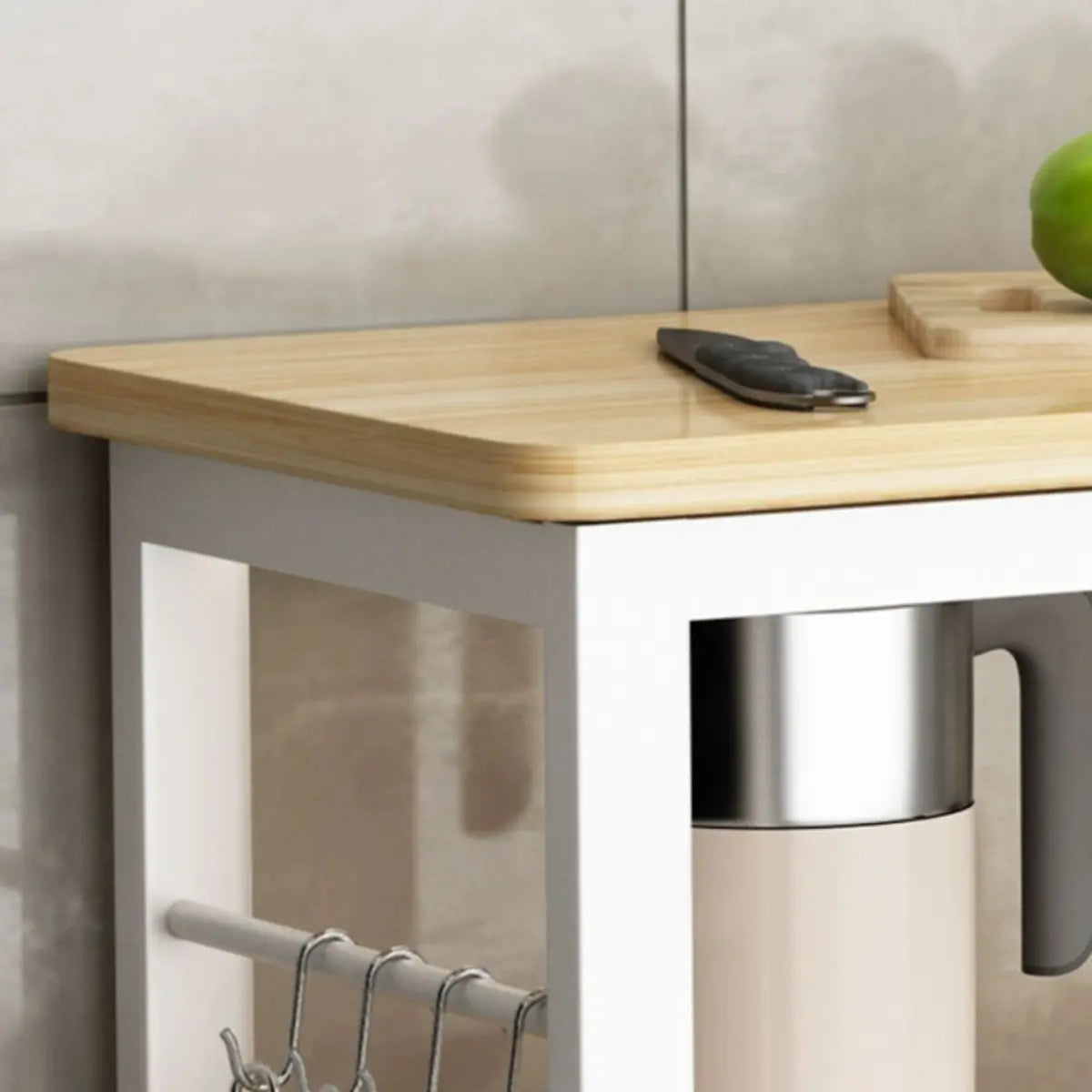 Stationary Rectangle Wood White Open Storage Kitchen Island