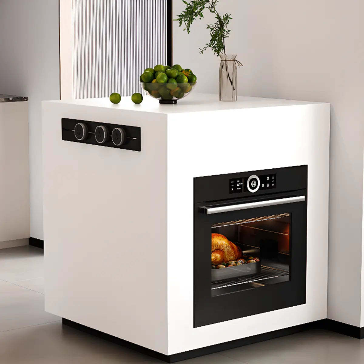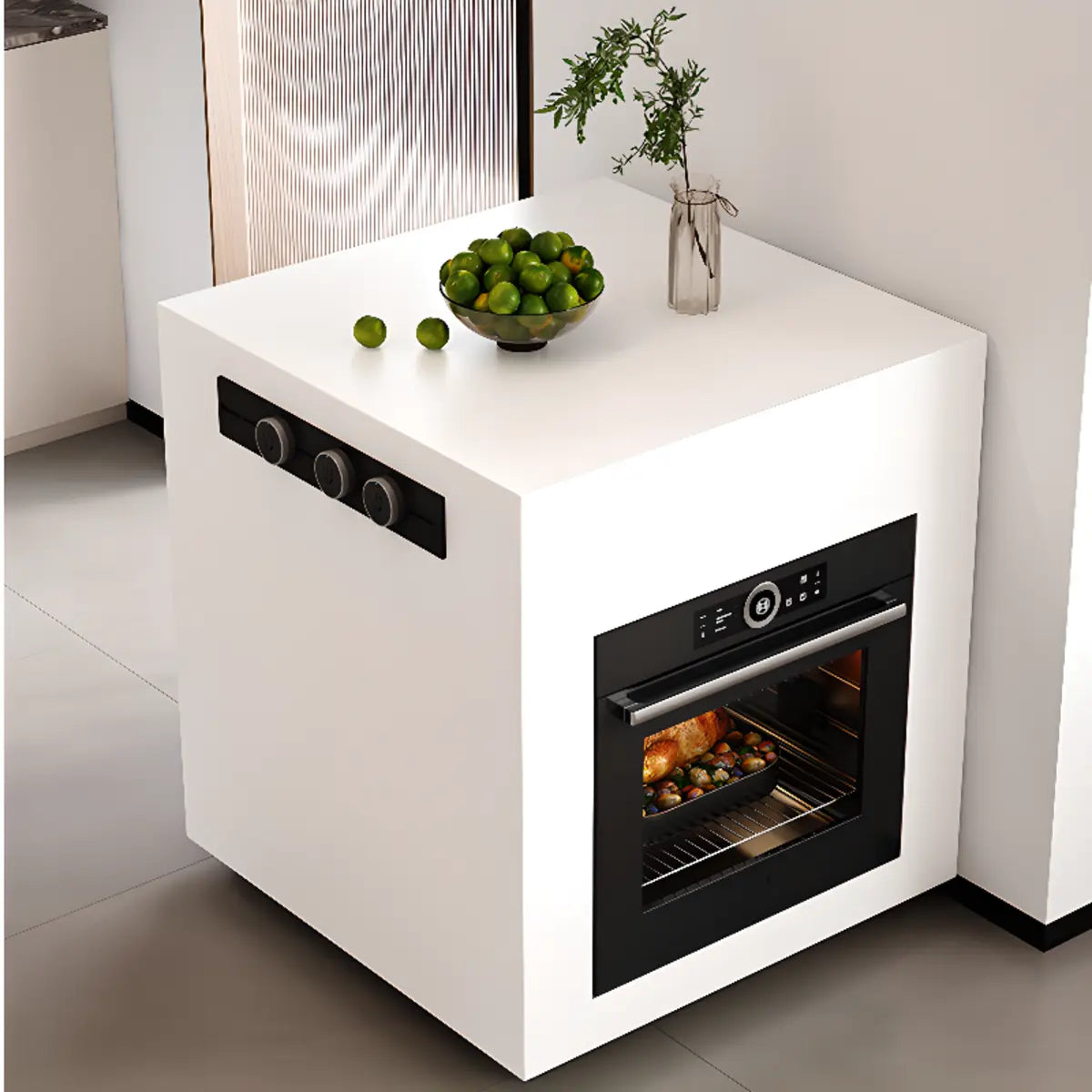 This modern kitchen island has a simple and elegant design. Using white stone, it is durable and quick to clean. If you want to optimize space or find kitchen furniture that can increase storage capacity, it is your ideal choice. Plus, its rectangular design fits various kitchen layouts and brings a stylish touch to your home.