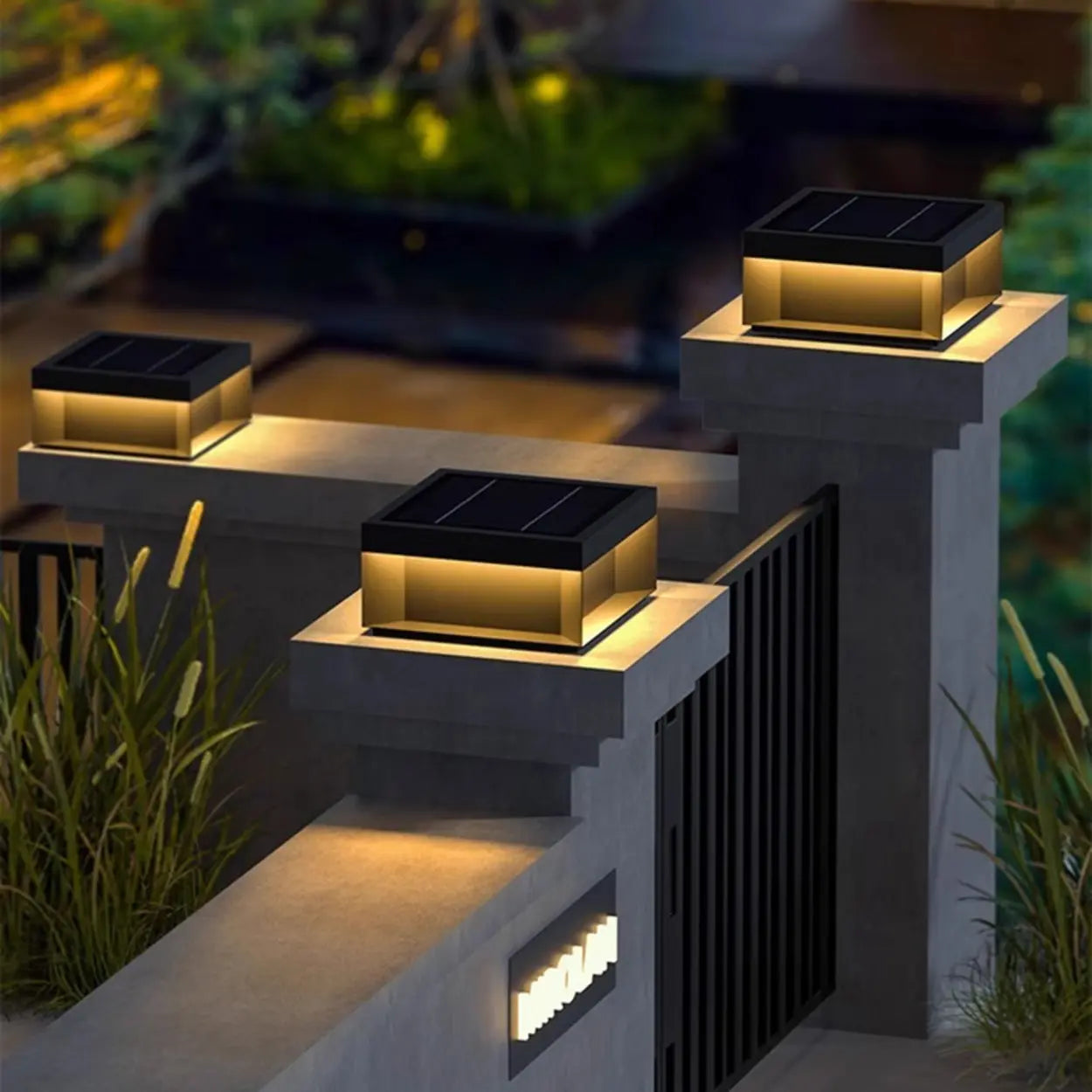 Stylish Solar Rectangular Cube Metal Outdoor Lamp