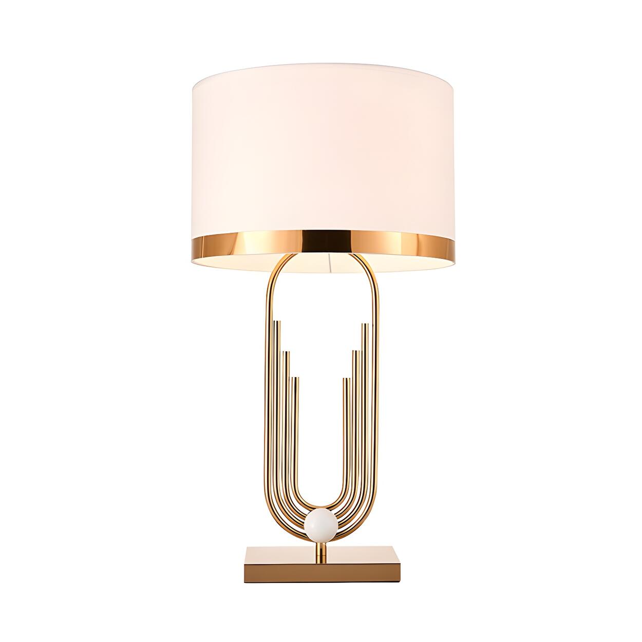 Stylish White Drum Shade Geometric Metal Table Lamp