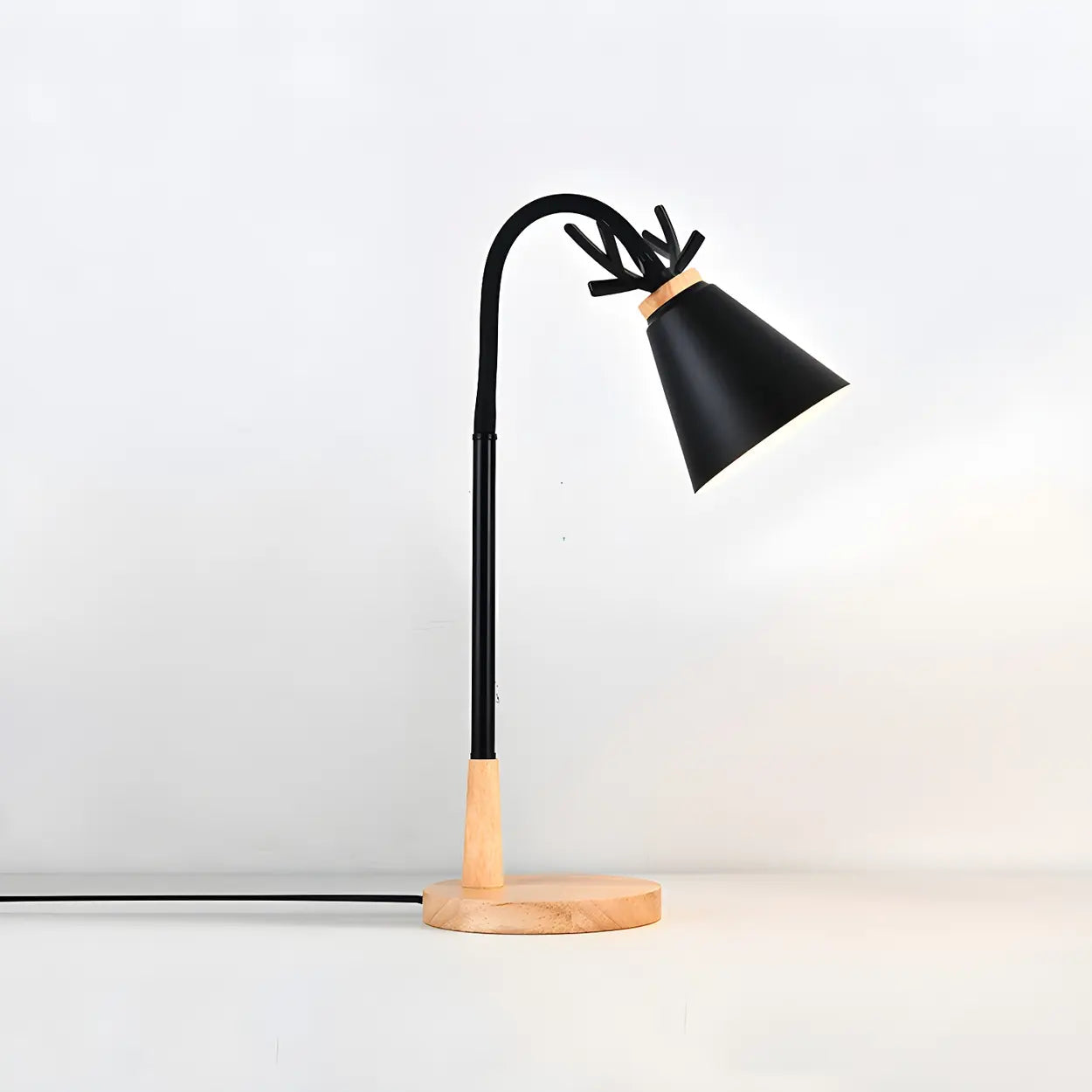Stylish Wood Base Conical Antler Shade Decor Table Lamp