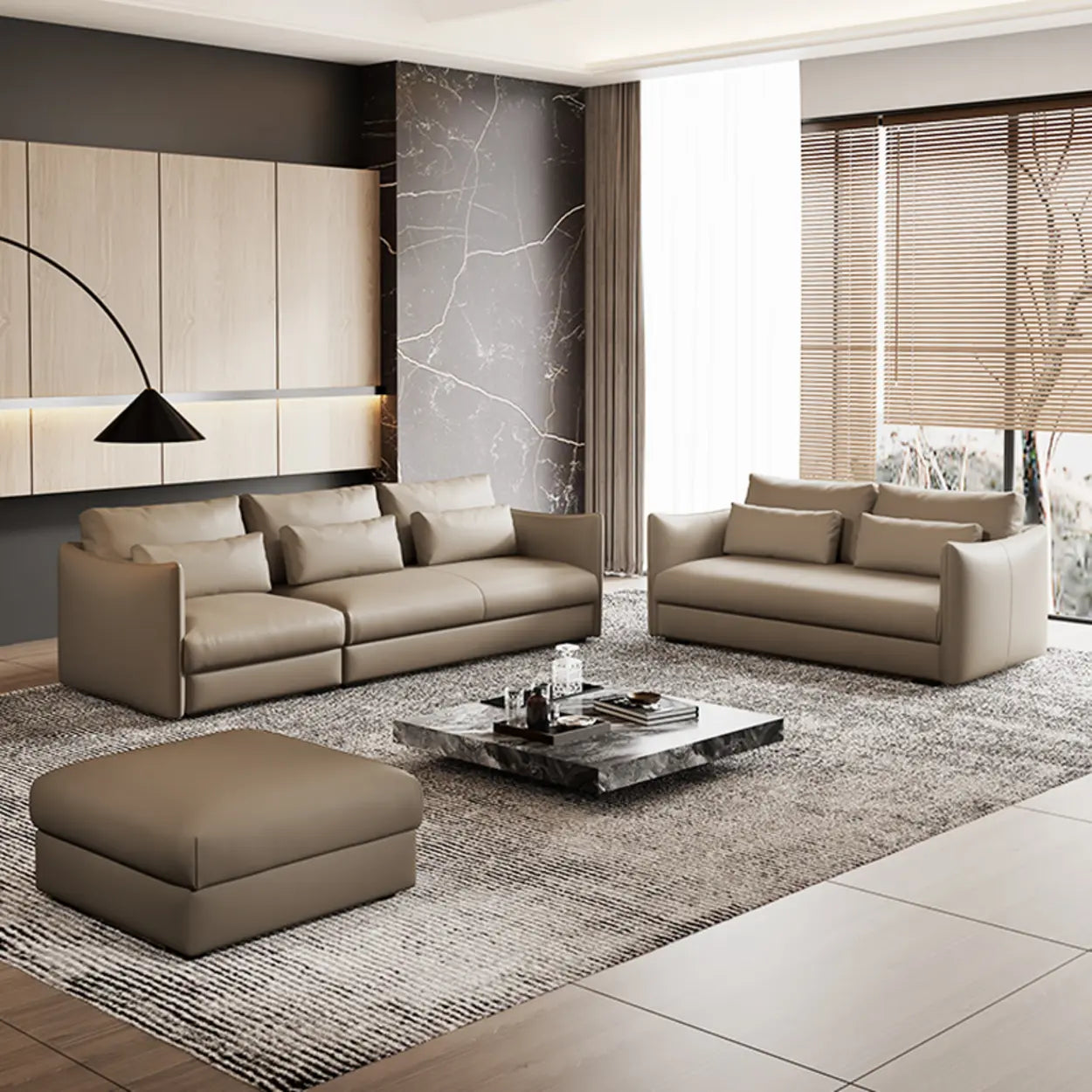 Tear Resistant Cow Leather Pillow Sofa with Ottoman