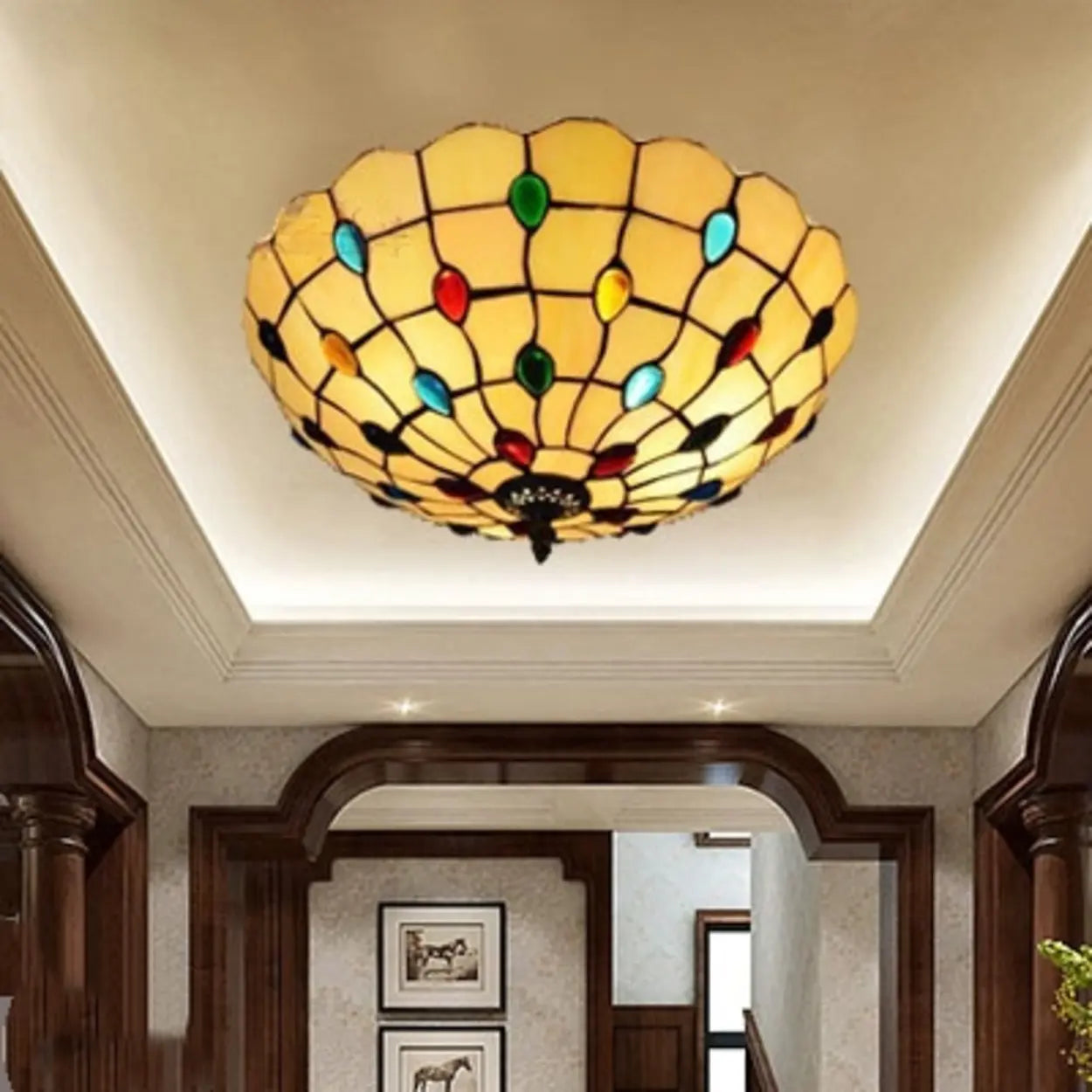- This cabochon ceiling light adopts Tiffany-style gemstone inlay design, adding gorgeous visual effects.