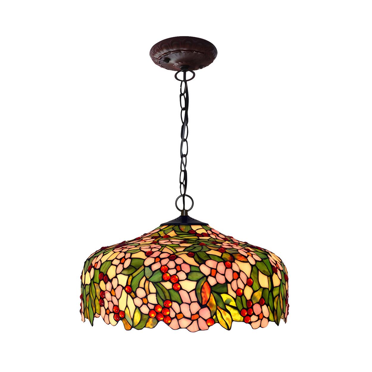 Tiffany Floral Stained Glass Pink Pendant Chandelier Light