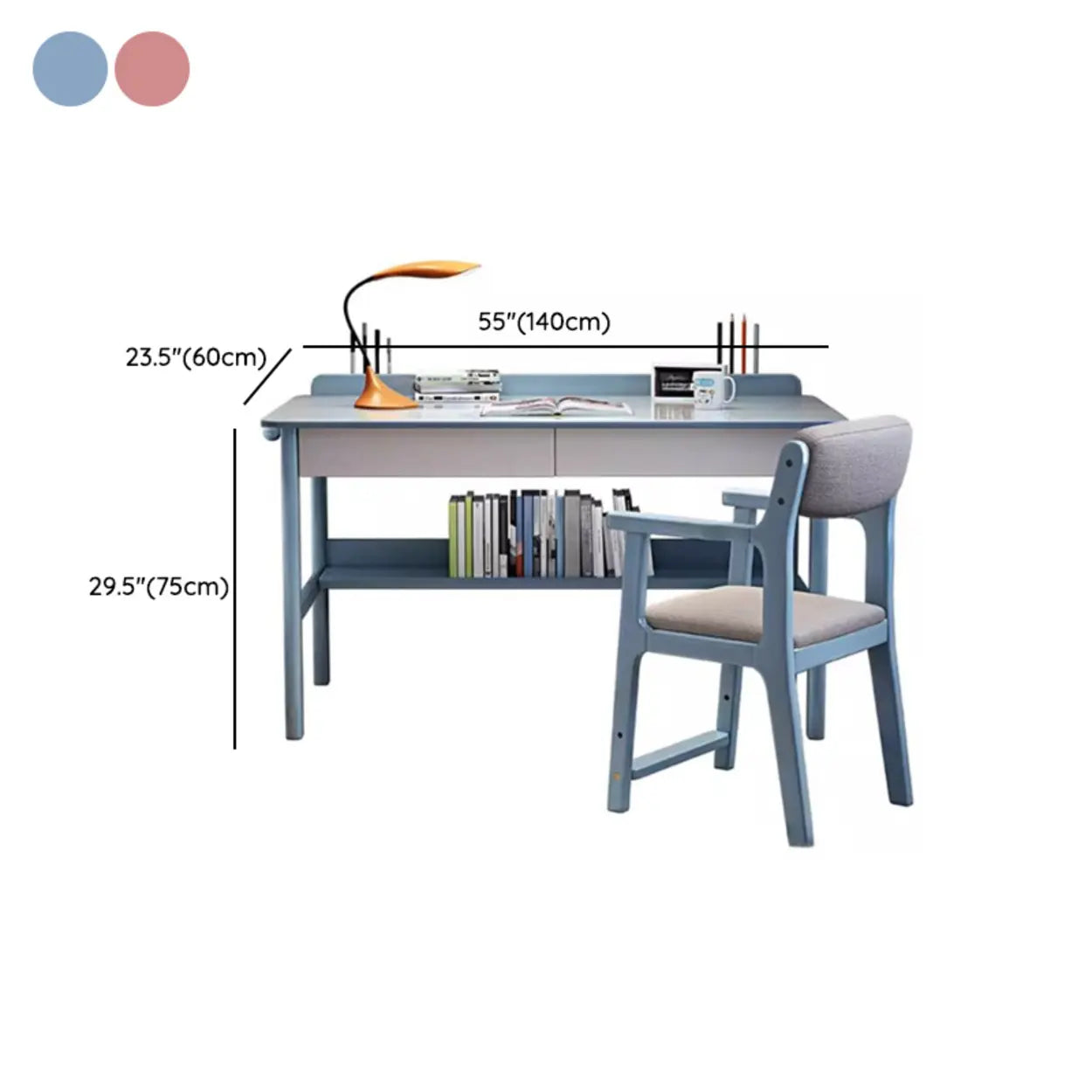 This rectangular wood children's desk set is both stylish and useful. It is built from fine wood, is reliable, and has a long service life. Its large desktop gives a spacious area for studying, painting, and other creative pursuits, while the matching chair provides the most comfortable sitting support. Contains additional drawers and shelves, it also provides handy storage space for books and stationery which encourages children to acquire strong organizational skills.
