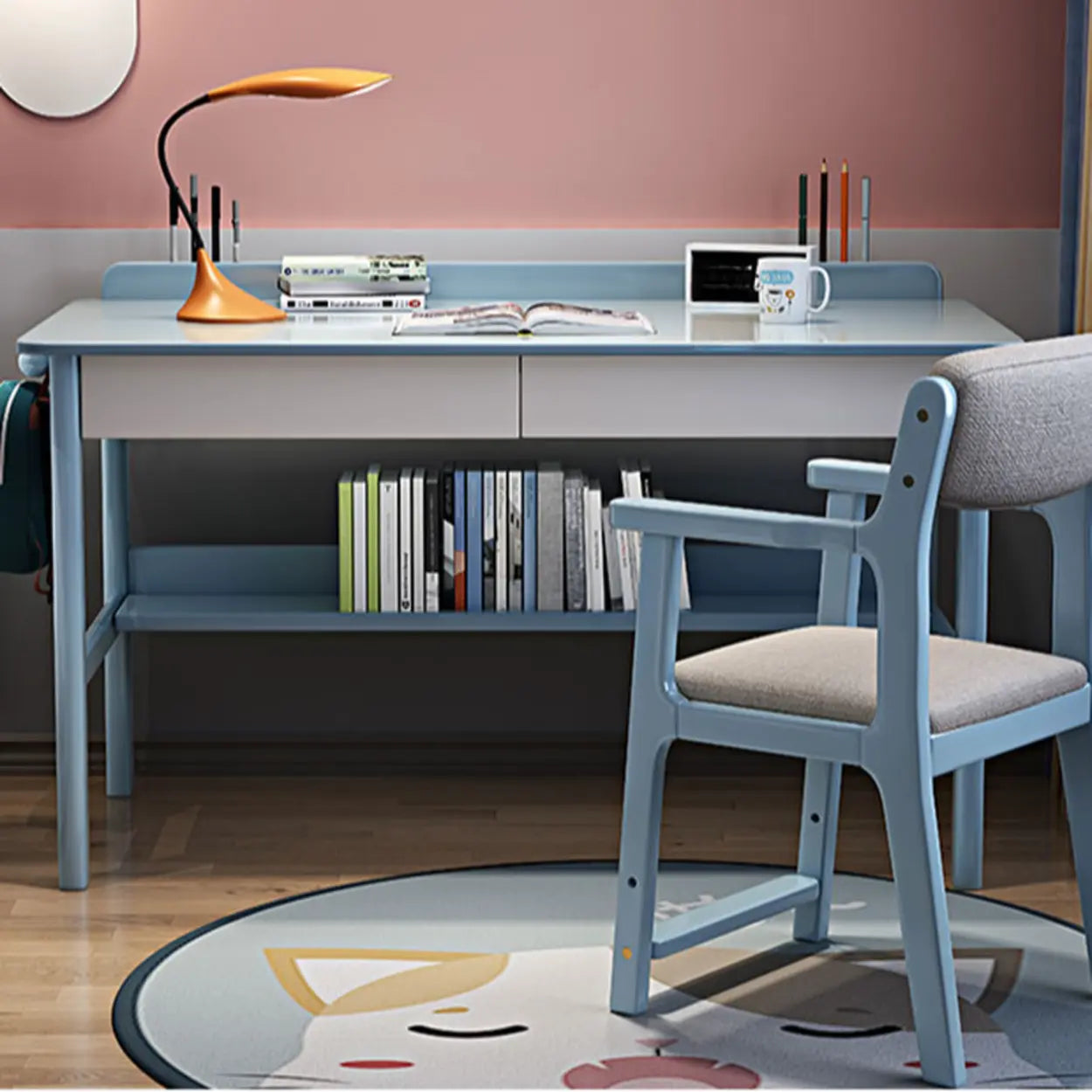 Rectangular Wood Container Storage Blue Kids Desk Set