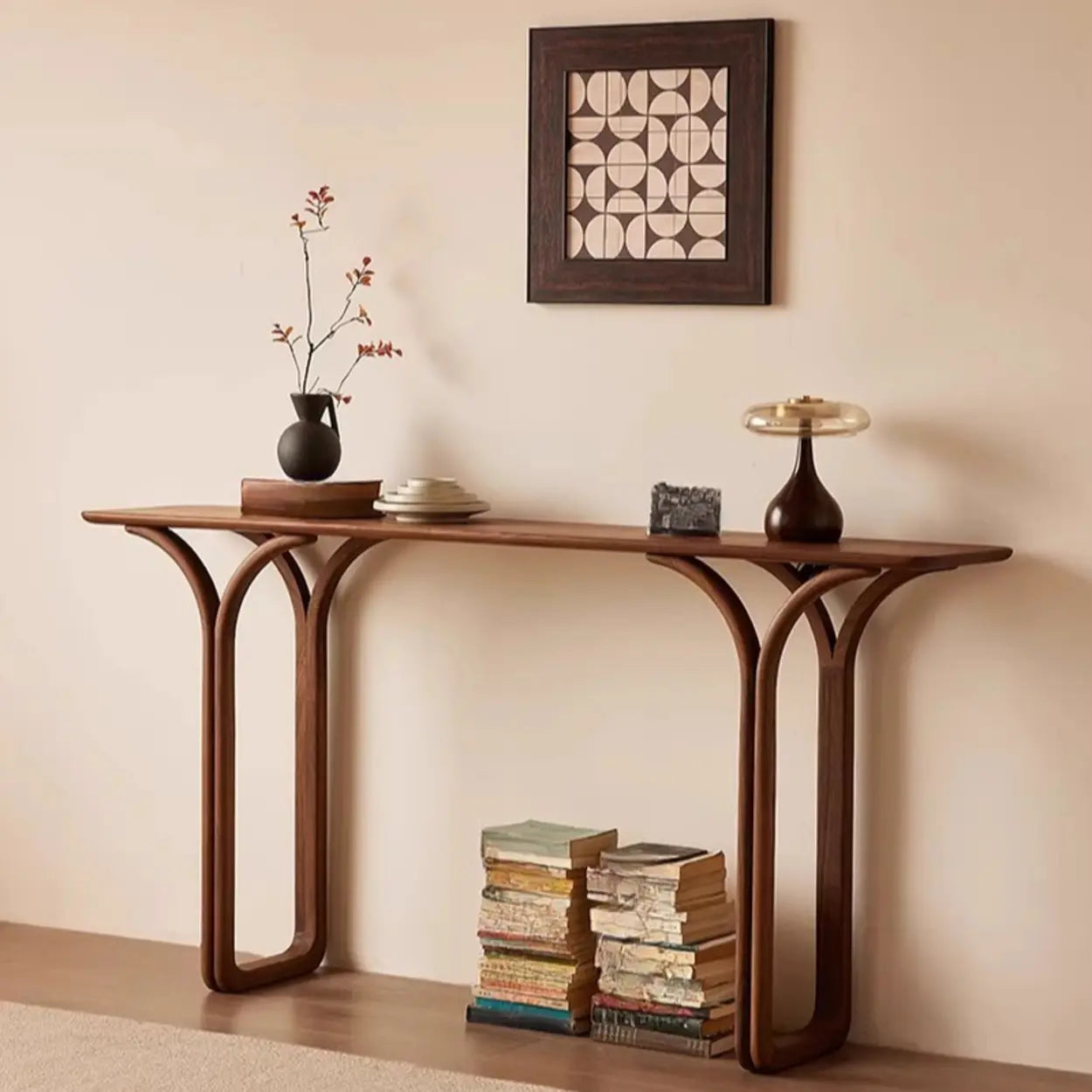 Measuring 14 inches deep, this table sits comfortably in narrow hallways or behind sofas. It offers a functional display area while keeping walkways open for guests.