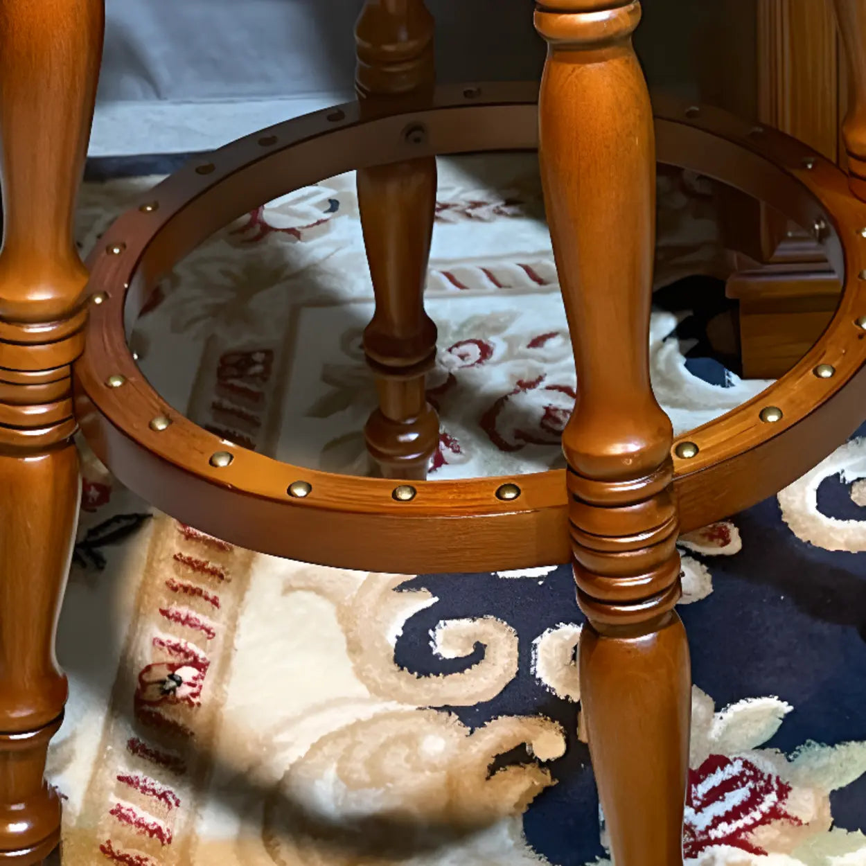 The elegant turned wooden legs and decorative ring enhance both beauty and stability. The circular footrest ensures comfortable leg placement, reducing strain when seated.