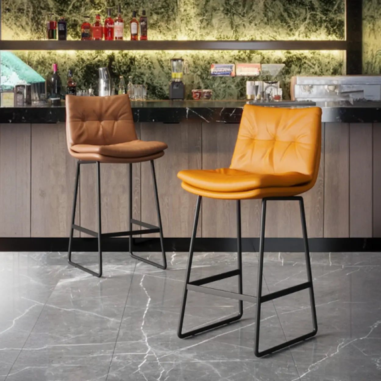 Upholstered Modern Leather Saddle Bar Stool with Metal Base