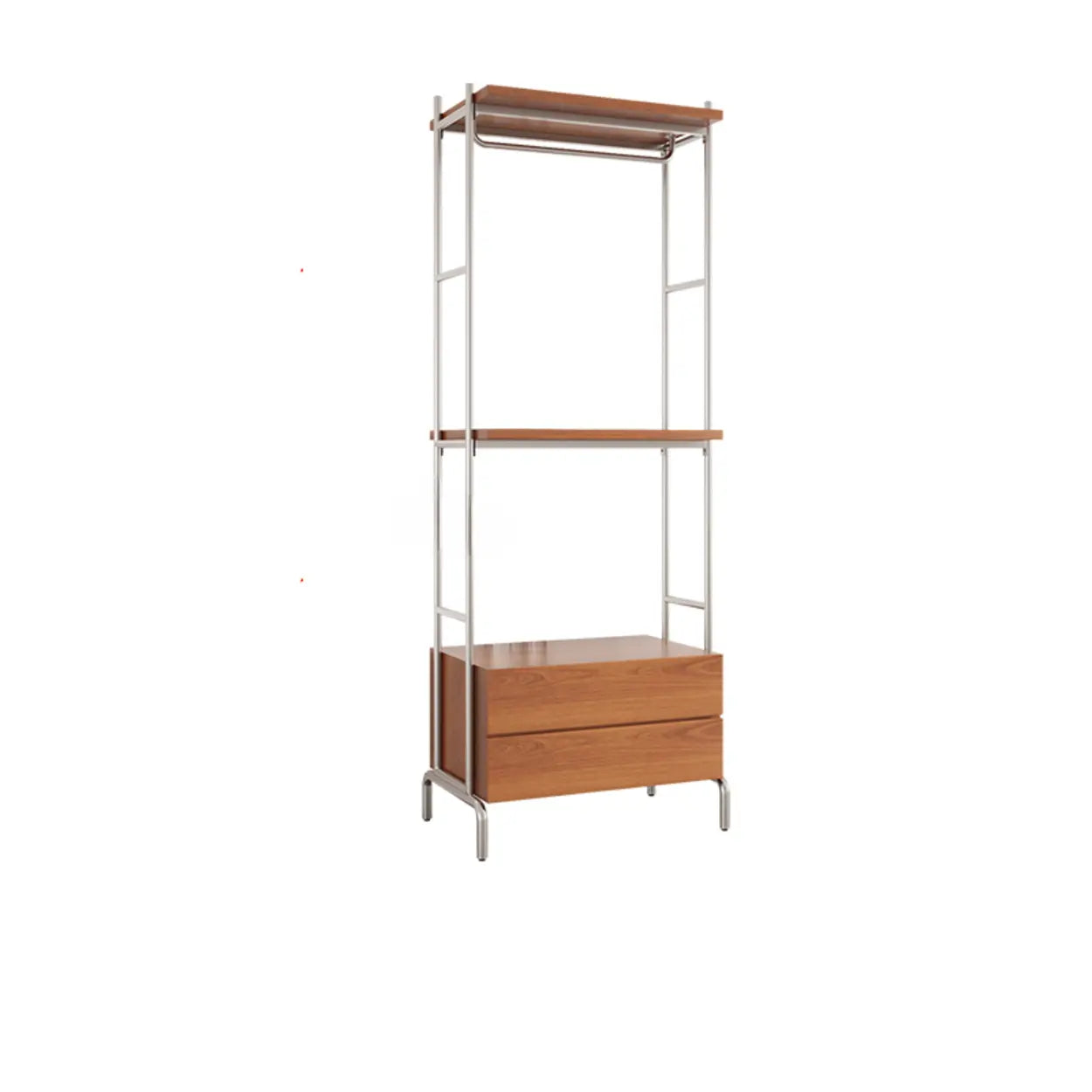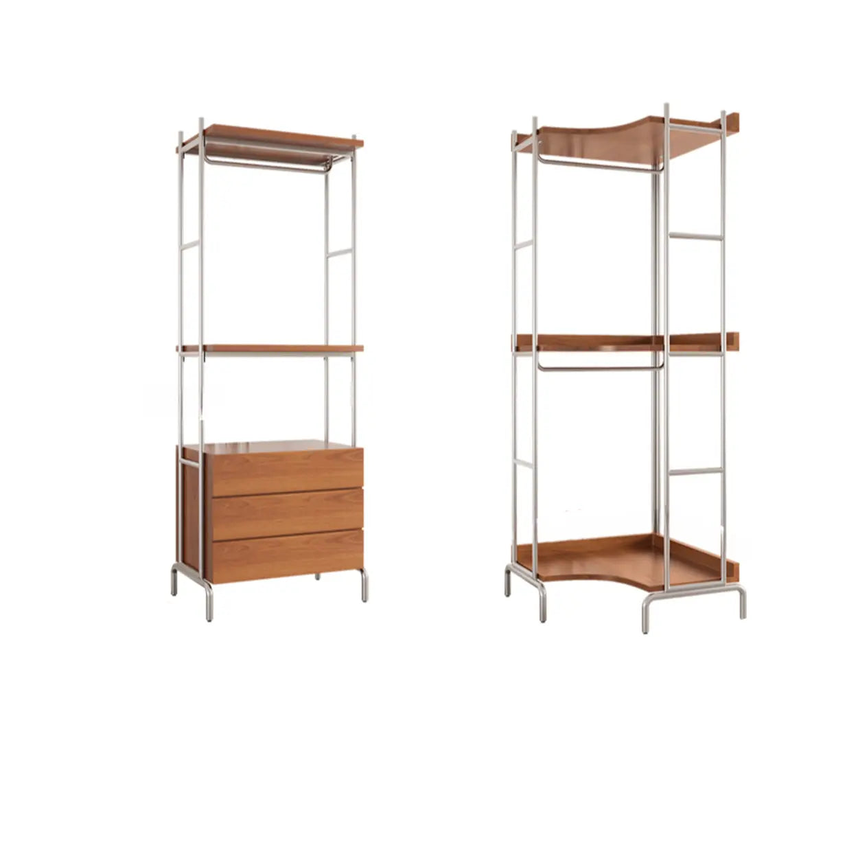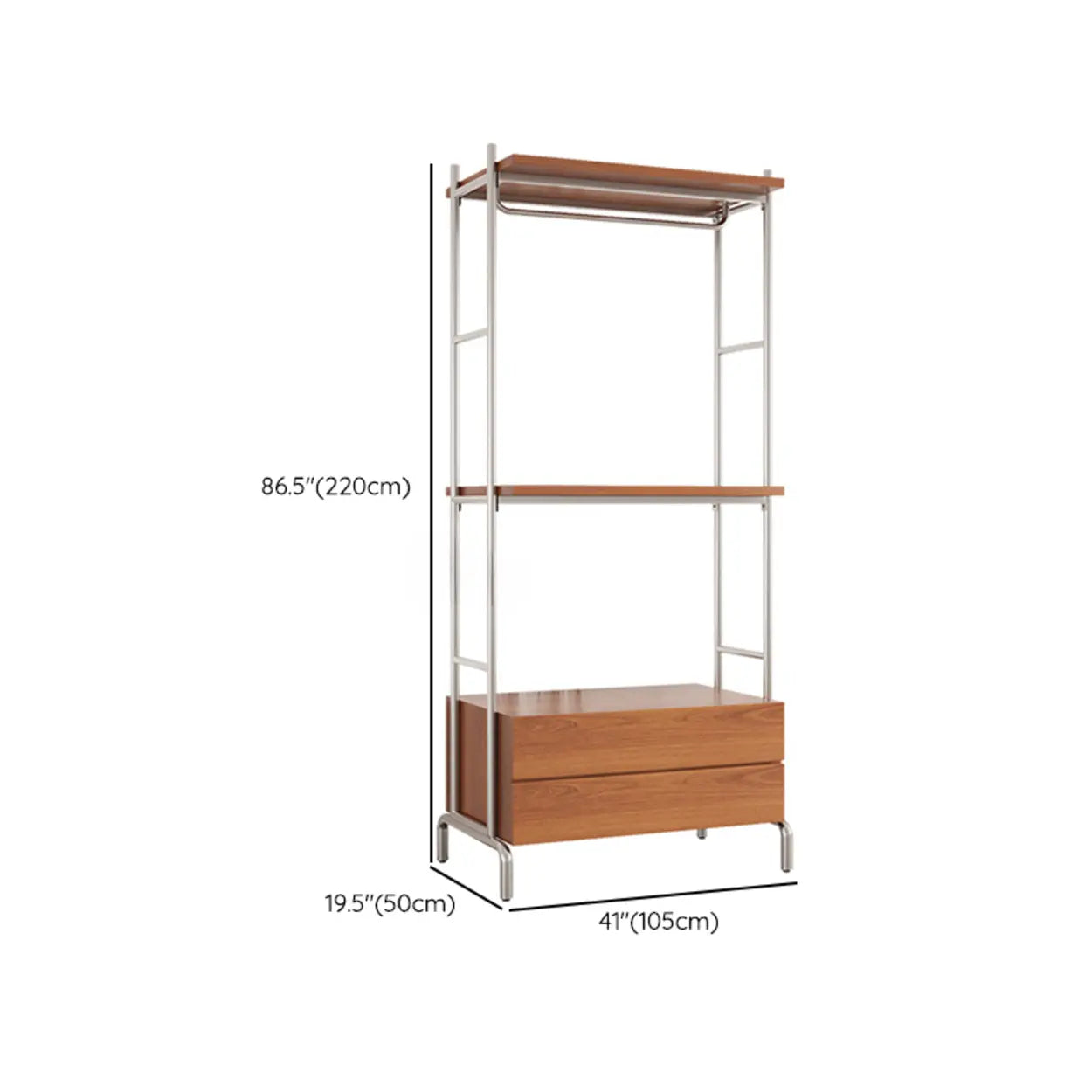 Versatile Metal and Wood Brown Drawers Shelves Coat Rack