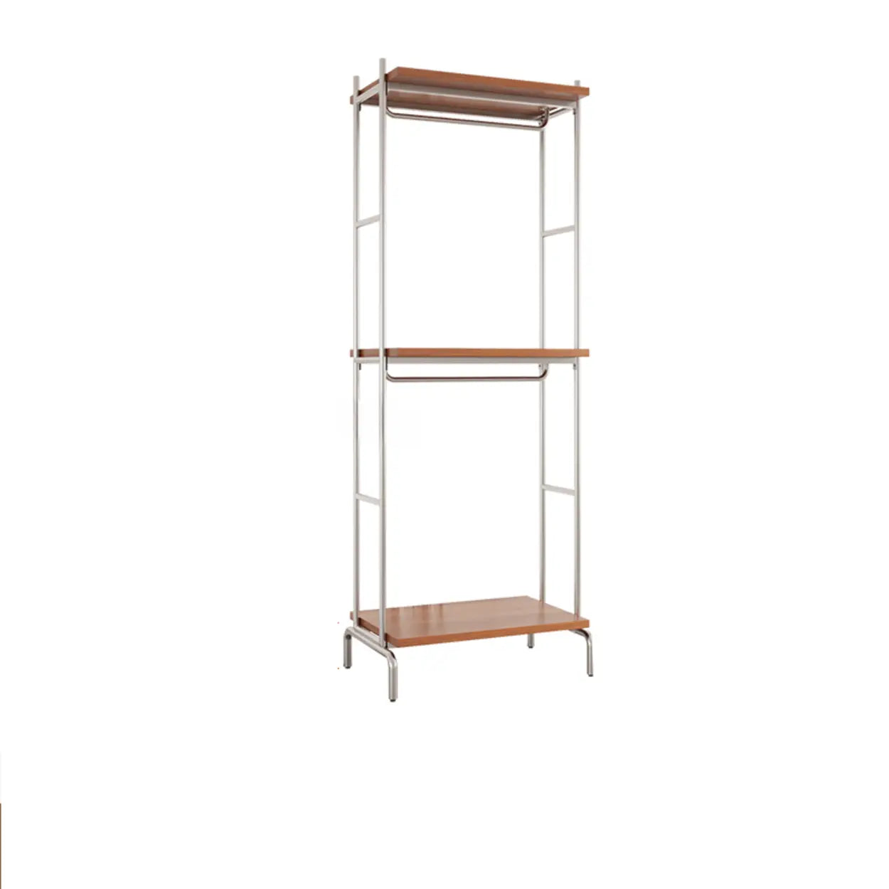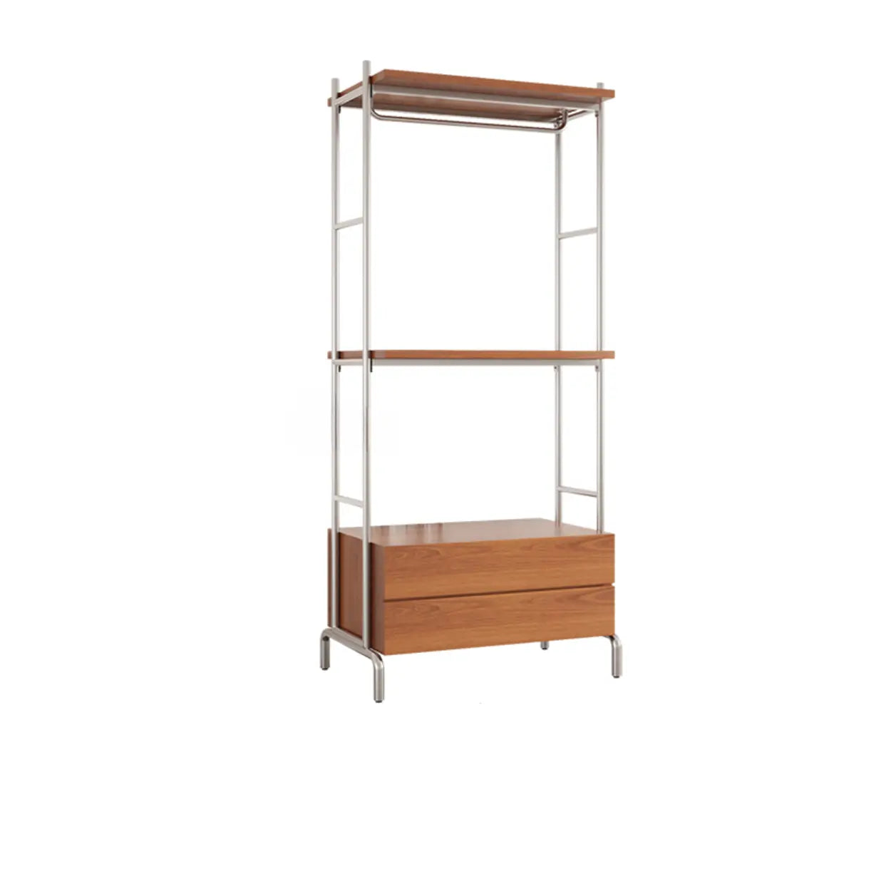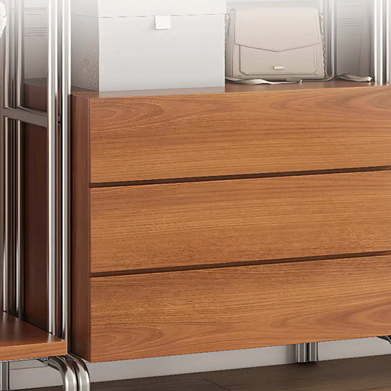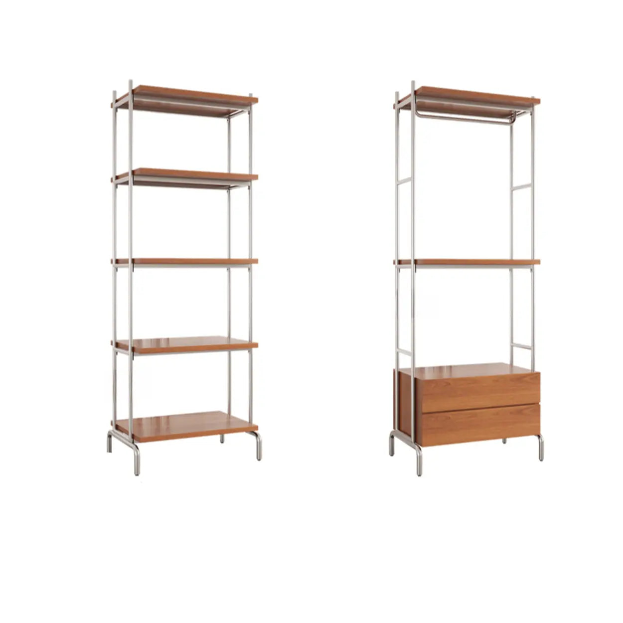 Versatile Metal and Wood Brown Drawers Shelves Coat Rack
