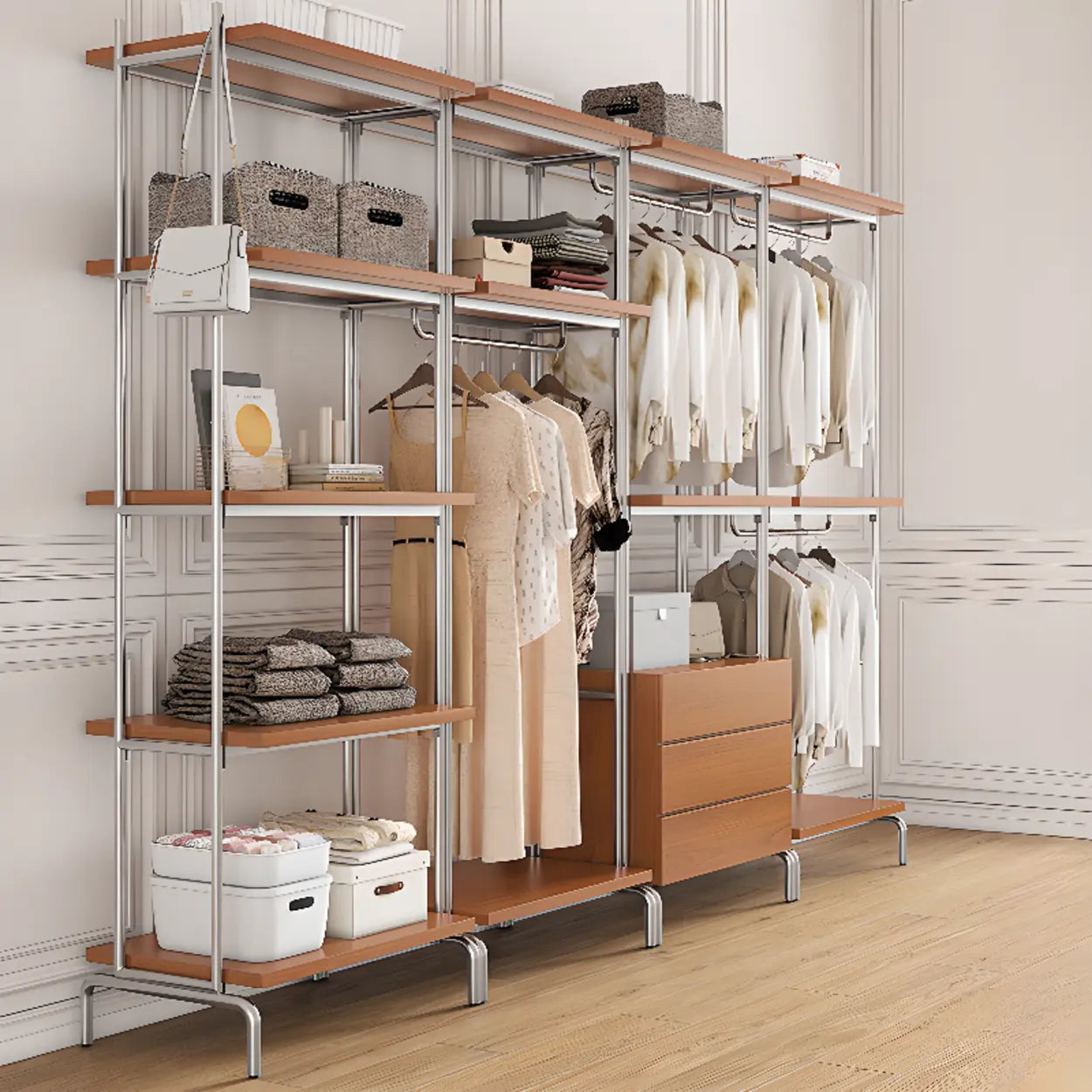 With multi-layer clothes rails and open shelves, it can easily meet various storage needs.