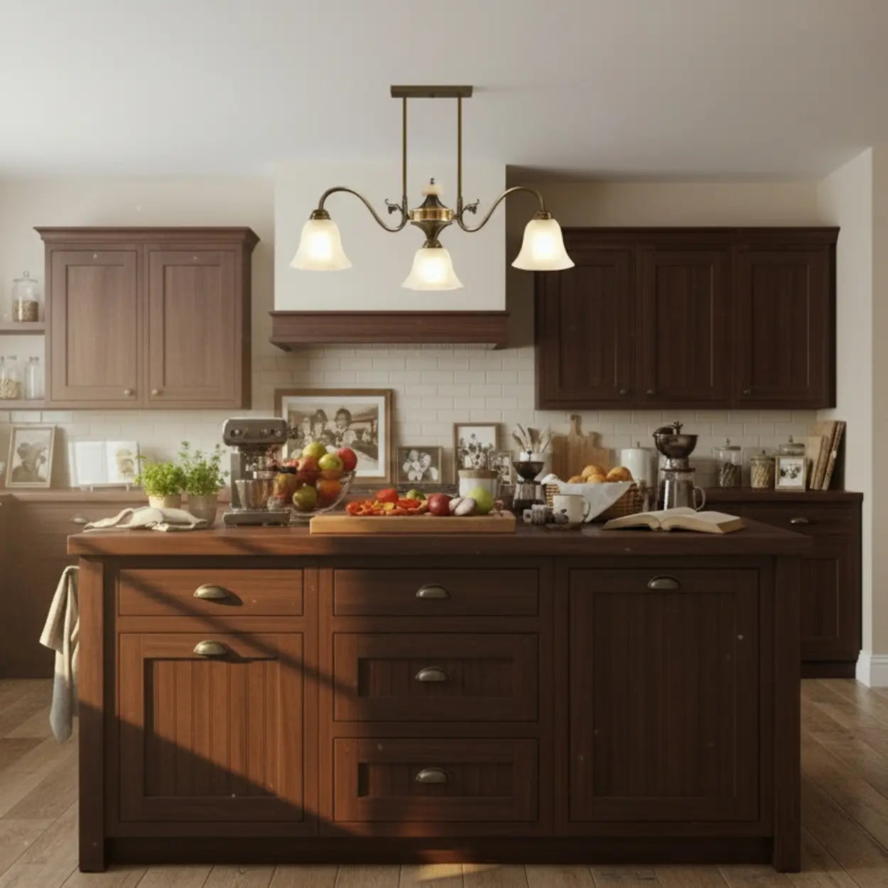 - Simple to install, this classic brown island lamp can enhance the decorative taste of the space.