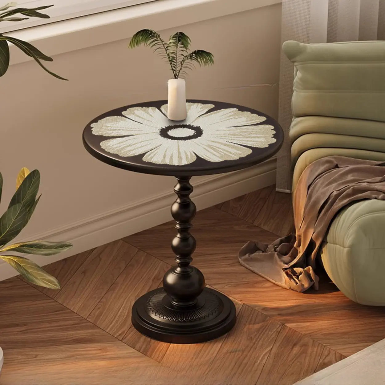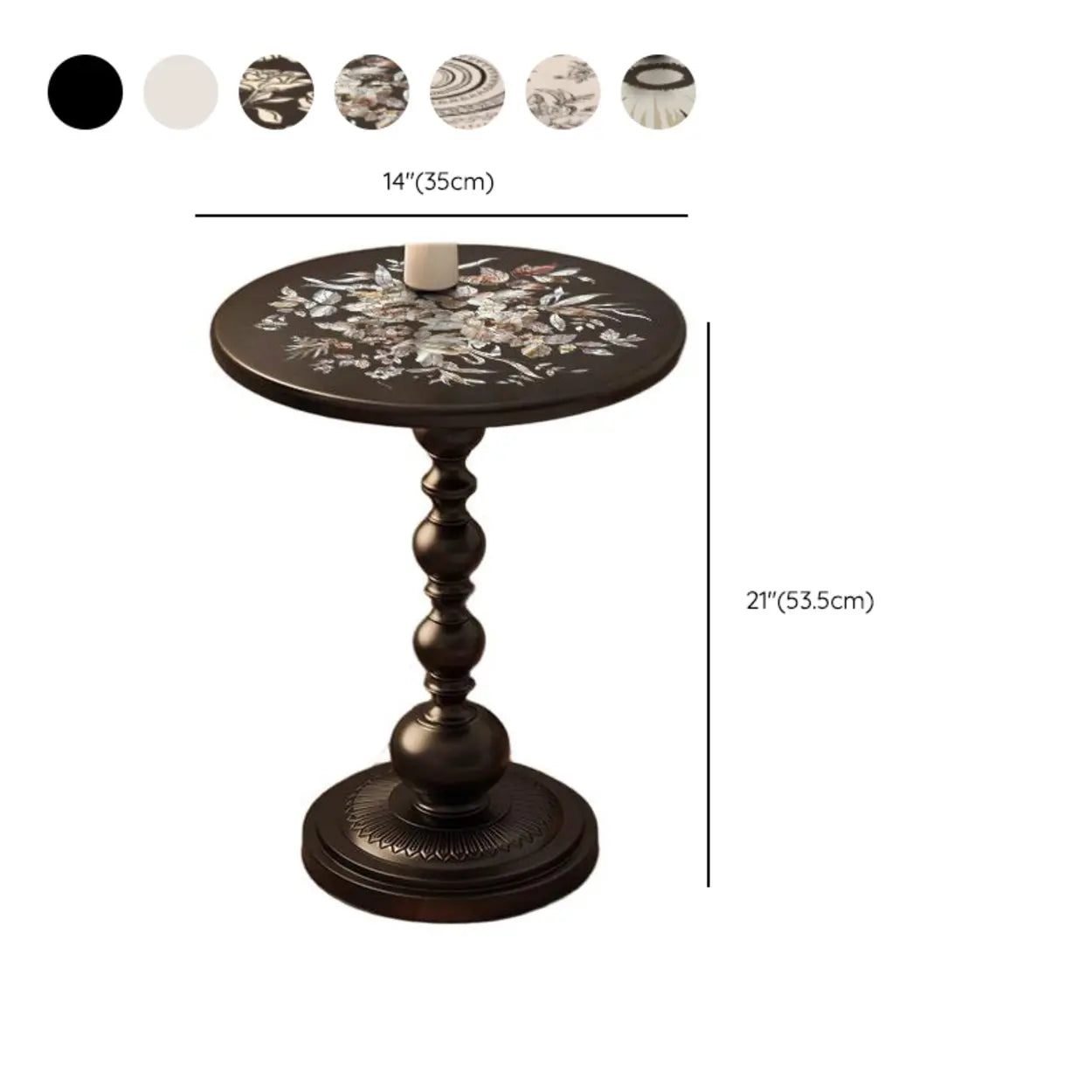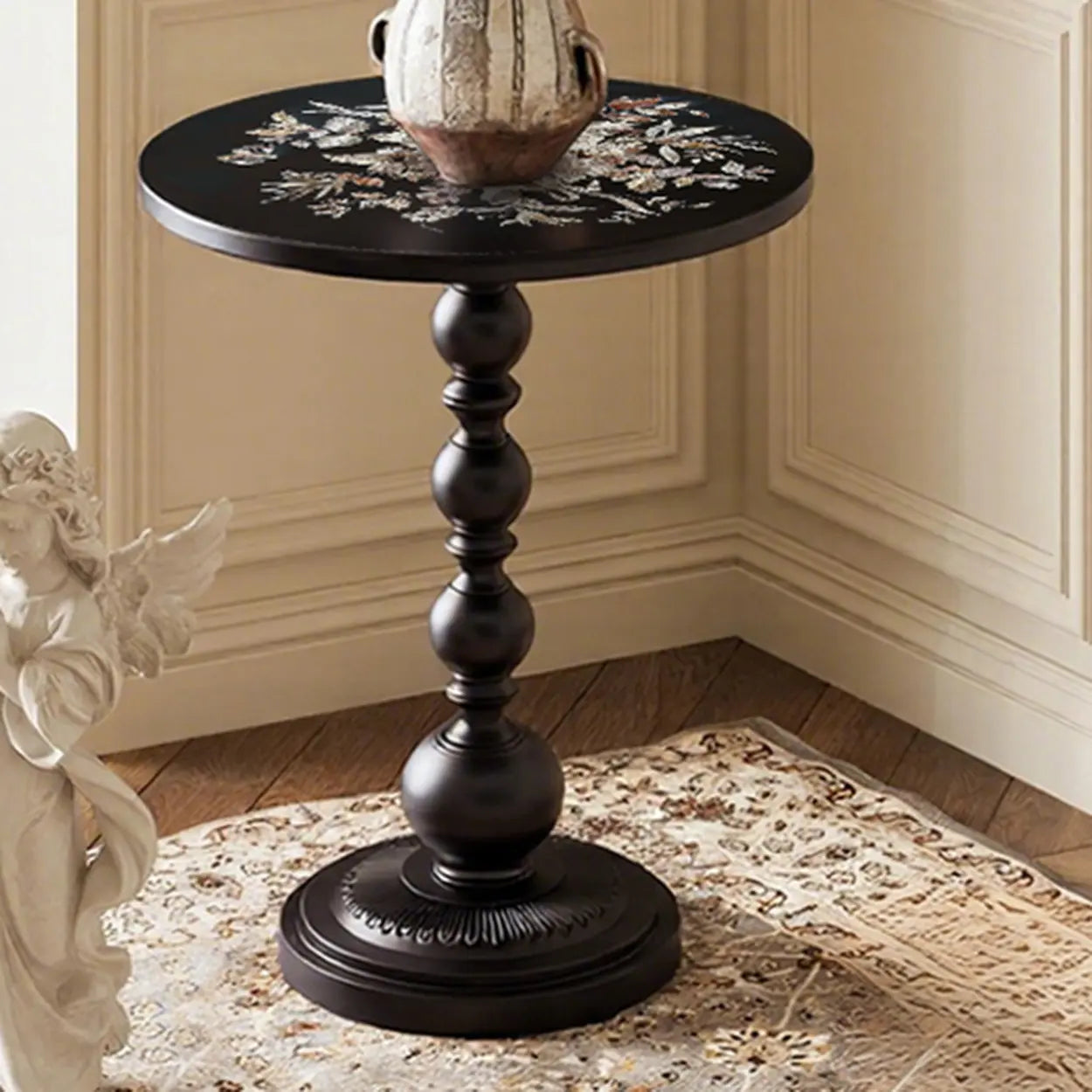 Vintage Artistic Patterns Black Round Wood Side Table - Black / 14"L x 14"W x 21"H is backordered and will ship as soon as it is back in stock.