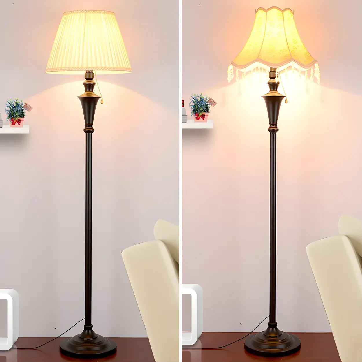 Blending an elegant metal stand with a warm beige lampshade, this classic floor lamp not only delivers excellent lighting effects but also adds elegance and warmth to your room. Whether placed in the living room, study, or bedroom, it creates a comfortable light atmosphere, allowing you to enjoy a relaxing and peaceful time. Applying a classic style, it suits a variety of decorative styles, creating a charming living space for you.