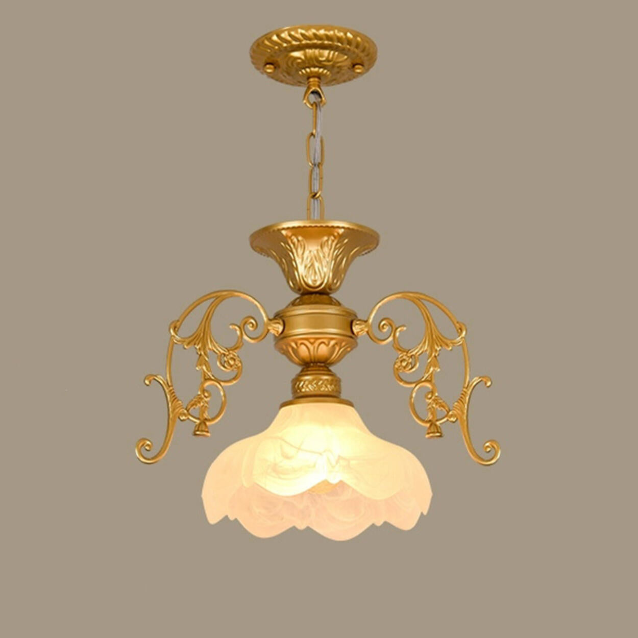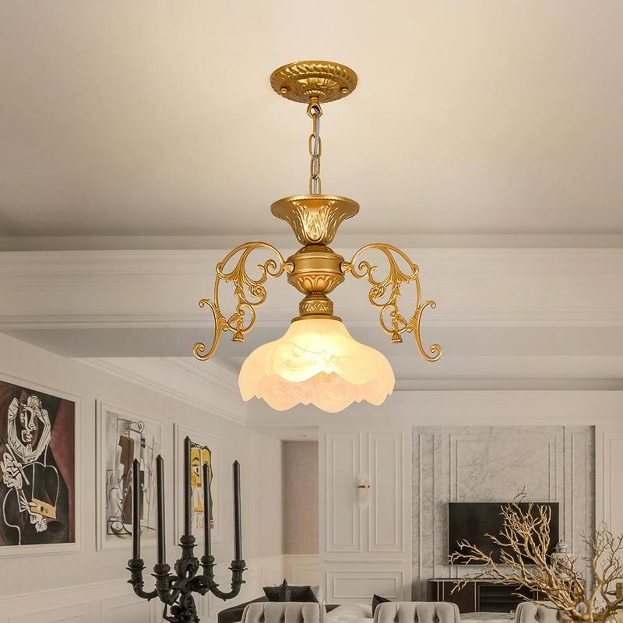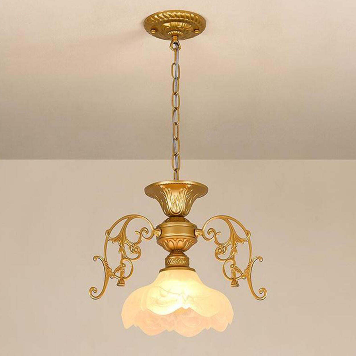 This retro luxury pendant light features black and gold metal carvings with a unique flower-shaped glass lampshade, adding elegance and nobility. This exquisite pendant light can highlight the unique taste and sophistication of your space.